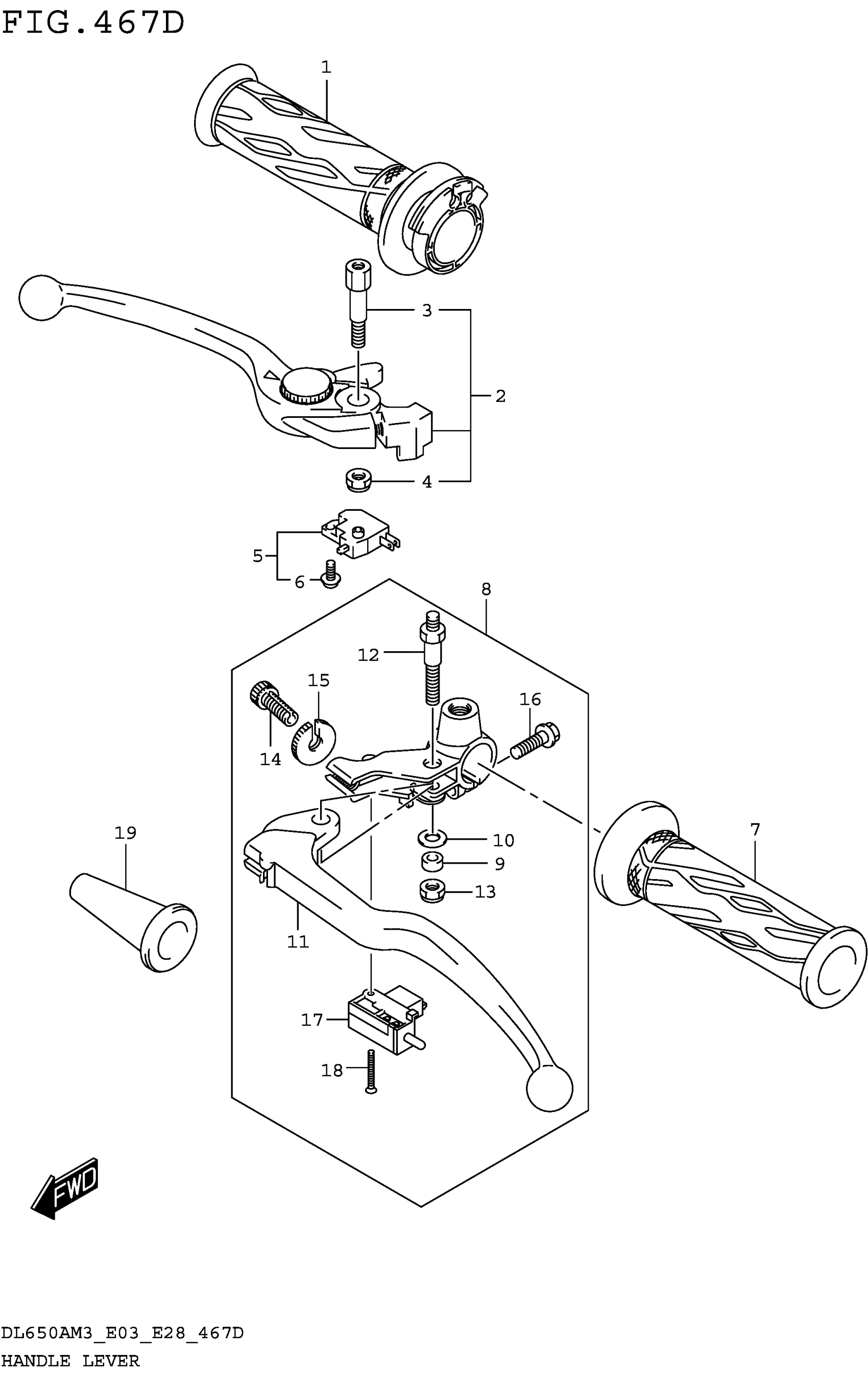 Suzuki DL650AM3 (2023) HANDLE LEVER (DL650XAM3E03) Diagram