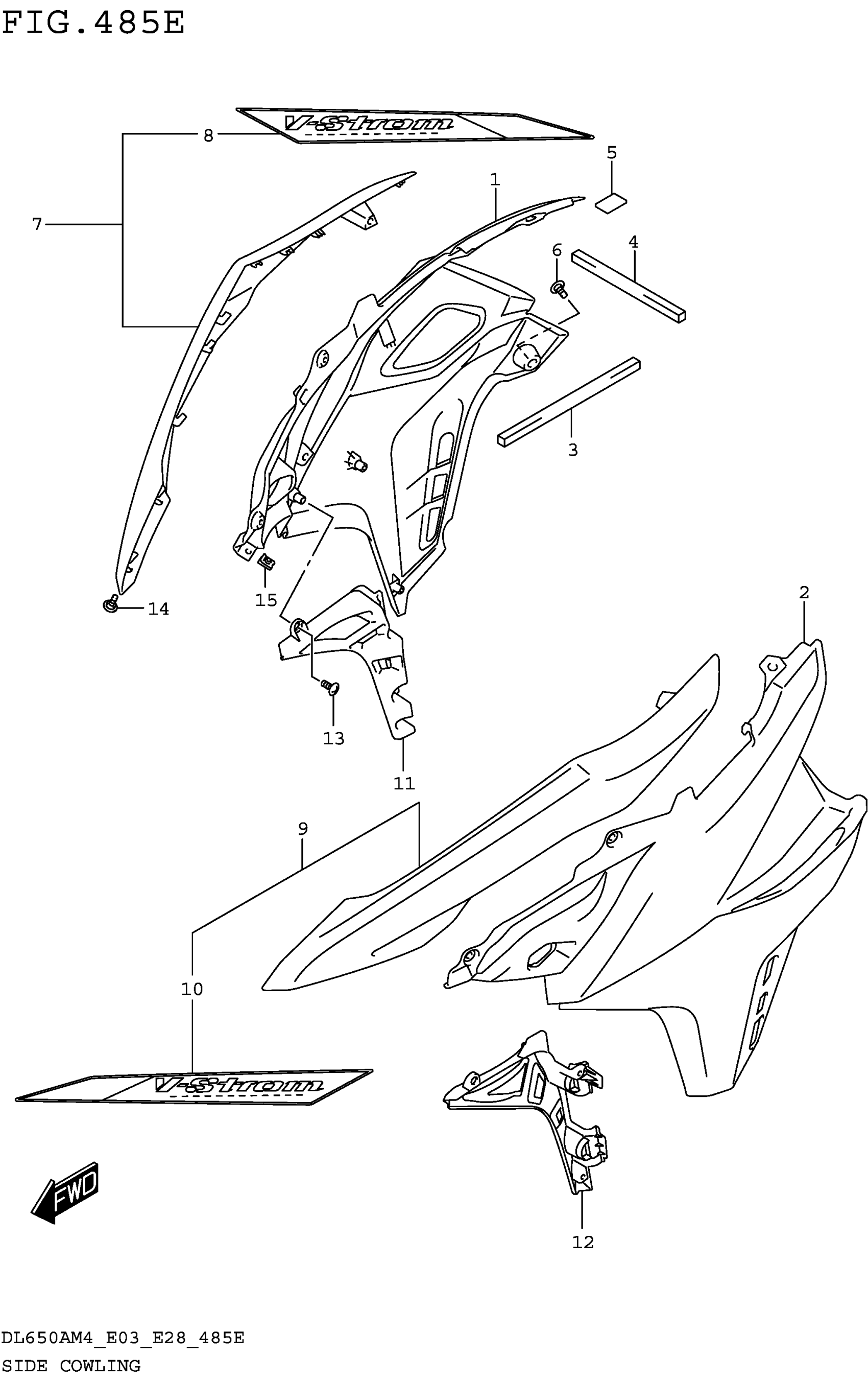 Suzuki DL650AM4 (2024) SIDE COWLING (DL650XAM4 E28) Diagram