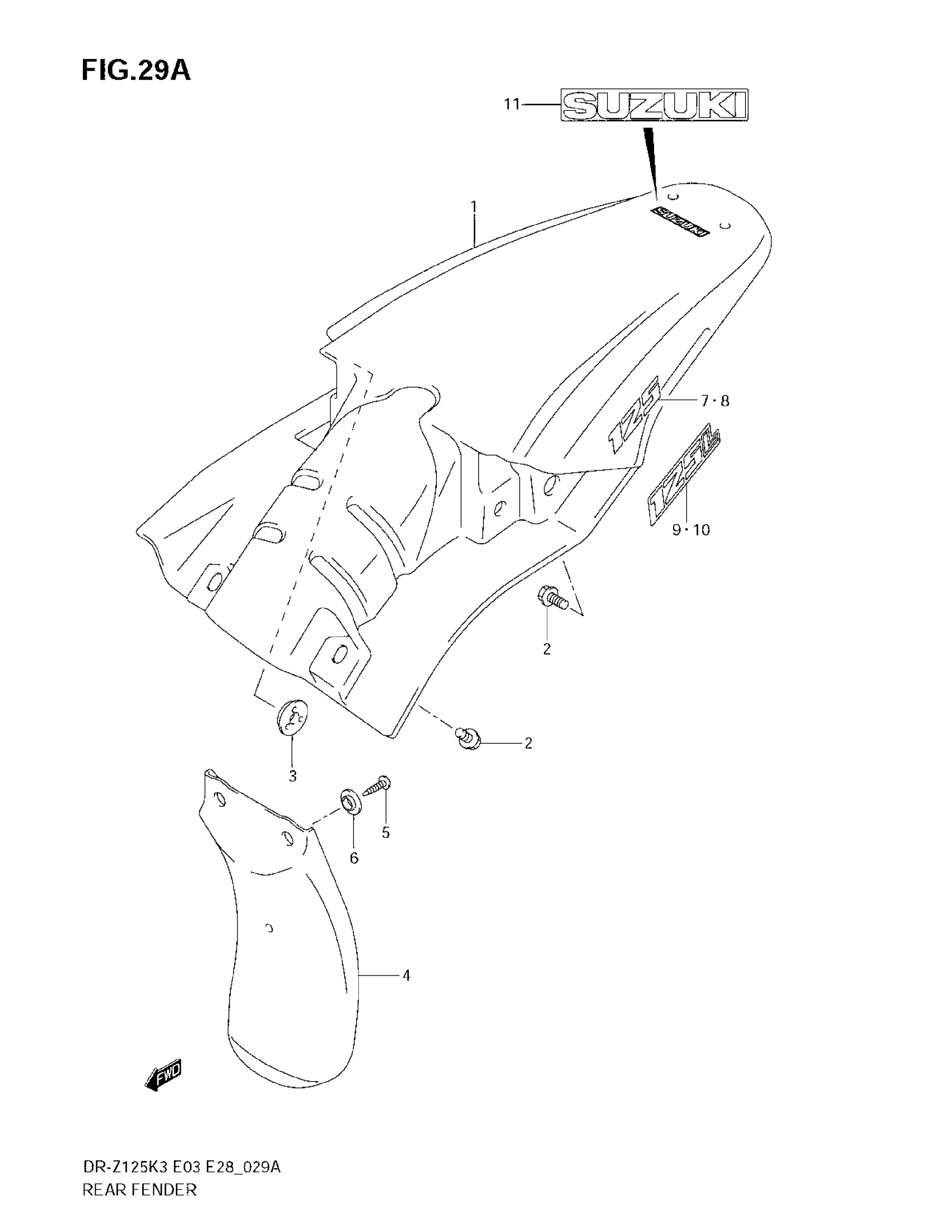 Suzuki DR-Z125 (2007) REAR FENDER (MODEL K4/K5/K6) Diagram