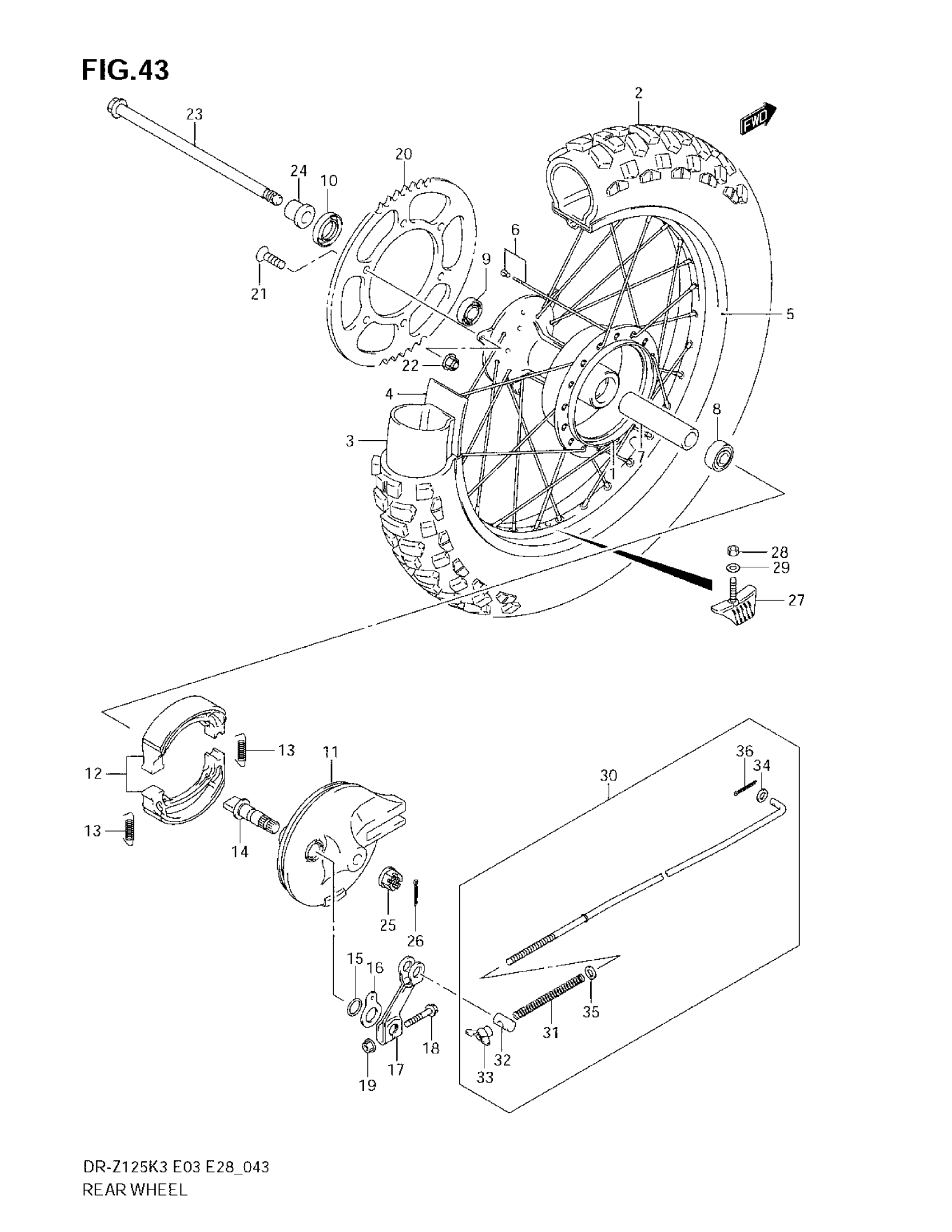 Suzuki DR-Z125 (2007) REAR WHEEL (DR-Z125K3) Diagram