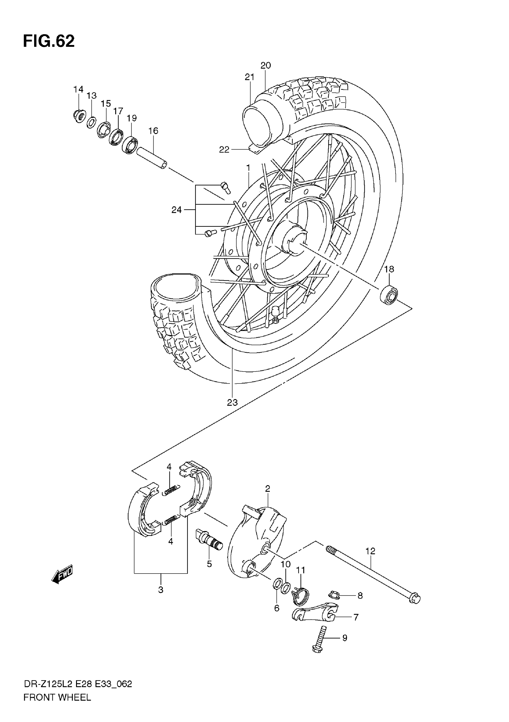 Suzuki DR-Z125L2 (2012) FRONT WHEEL (DR-Z125 E28) Diagram