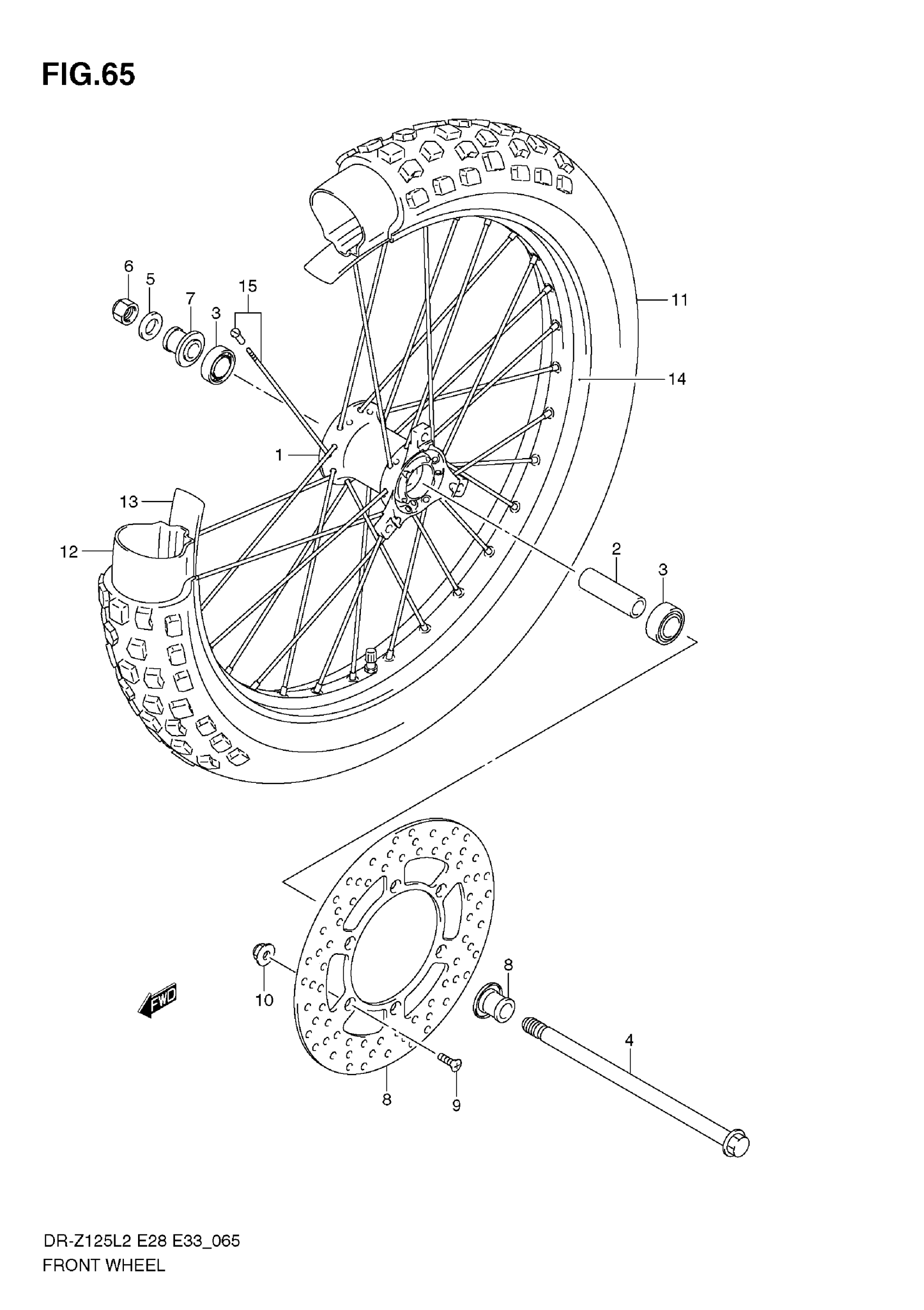 Suzuki DR-Z125L2 (2012) FRONT WHEEL (DR-Z125L E33) Diagram