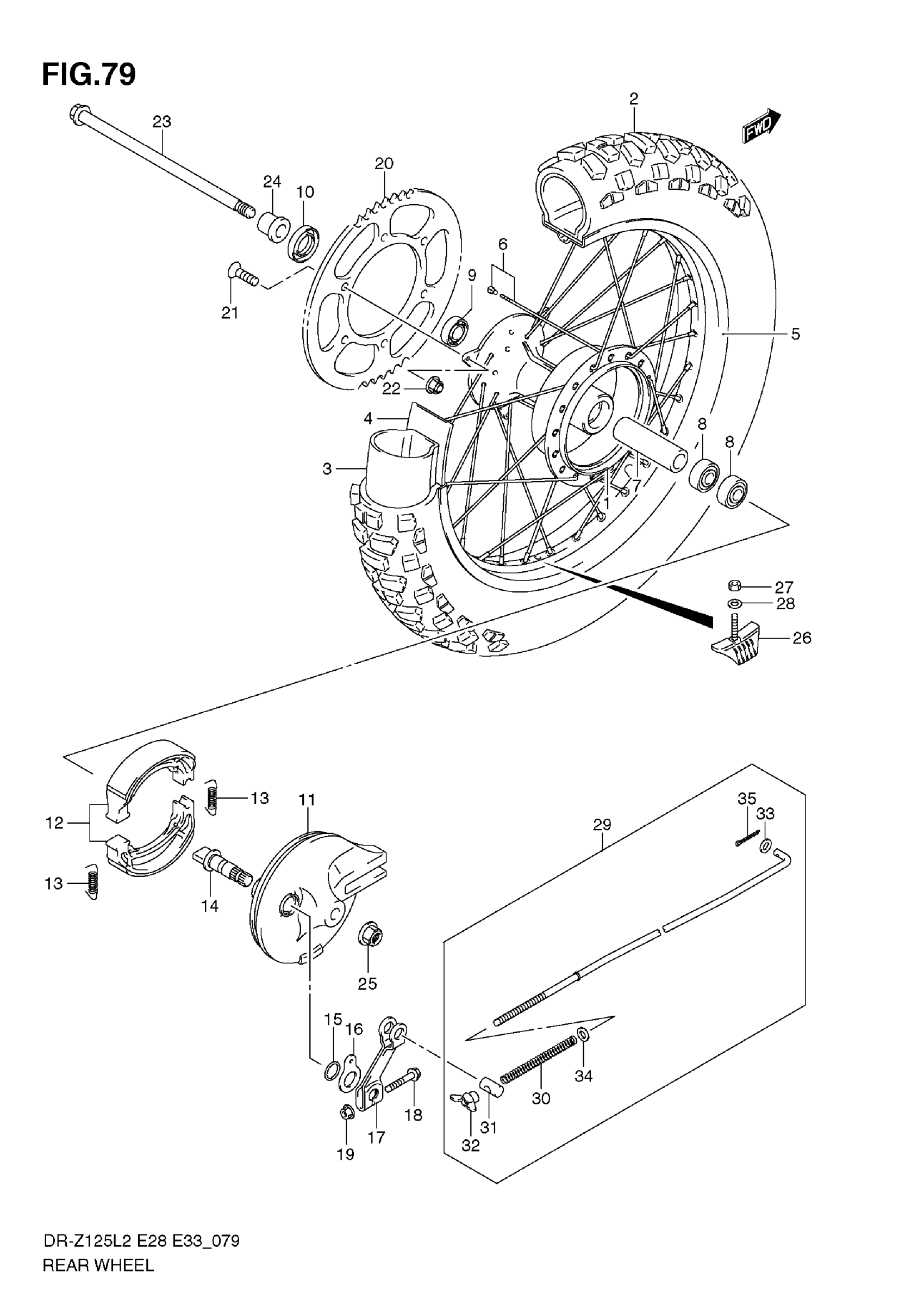 Suzuki DR-Z125L2 (2012) REAR WHEEL (DR-Z125 E28) Diagram