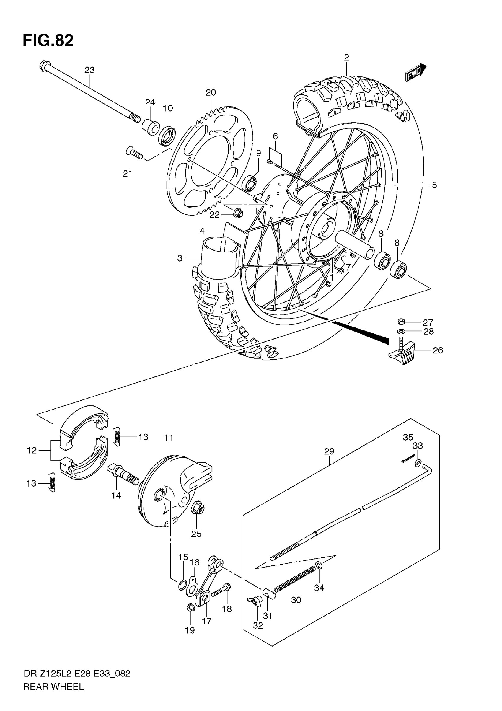 Suzuki DR-Z125L2 (2012) REAR WHEEL (DR-Z125L E33) Diagram