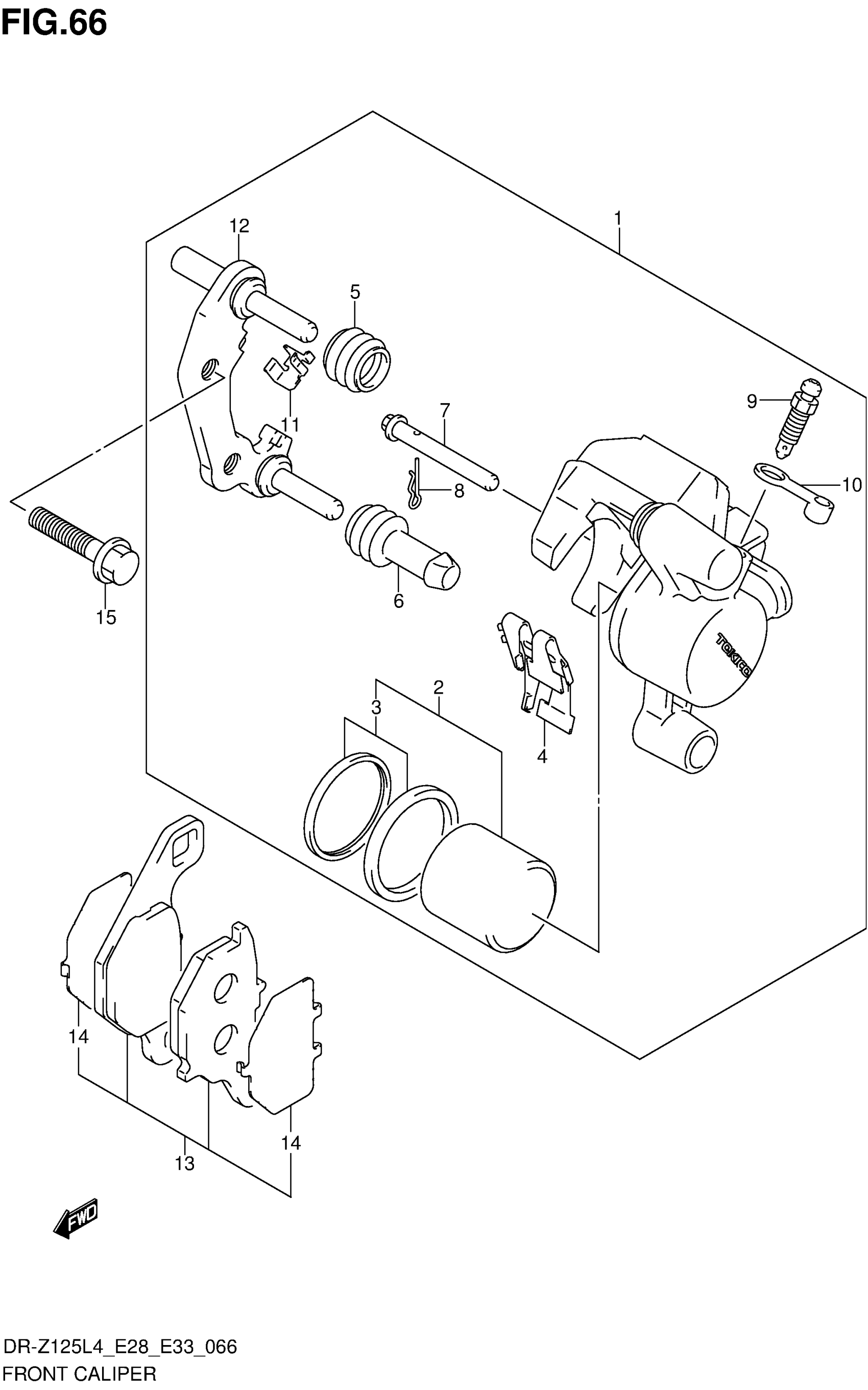 Suzuki DR-Z125L4 (2014) FRONT CALIPER (DR-Z125LL4 E28) Diagram