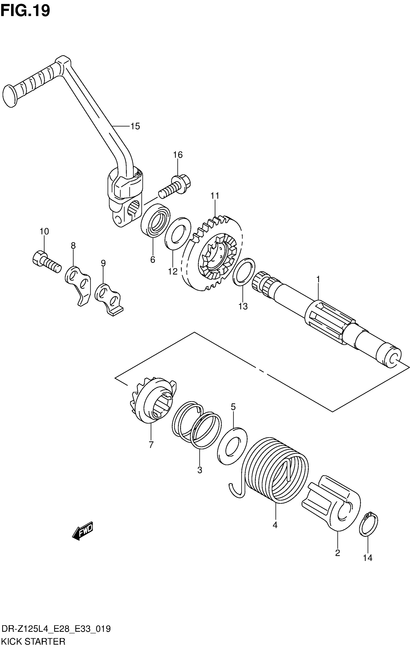 Suzuki DR-Z125L4 (2014) KICK STARTER Diagram