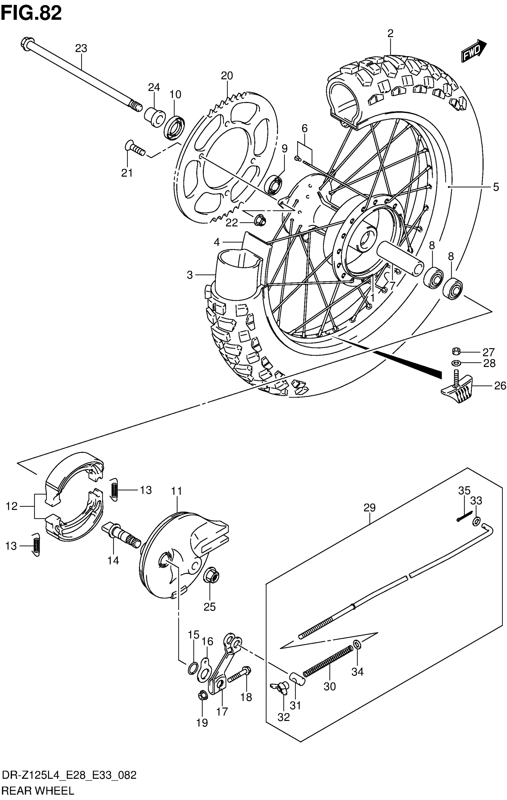 Suzuki DR-Z125L4 (2014) REAR WHEEL (DR-Z125LL4 E33) Diagram