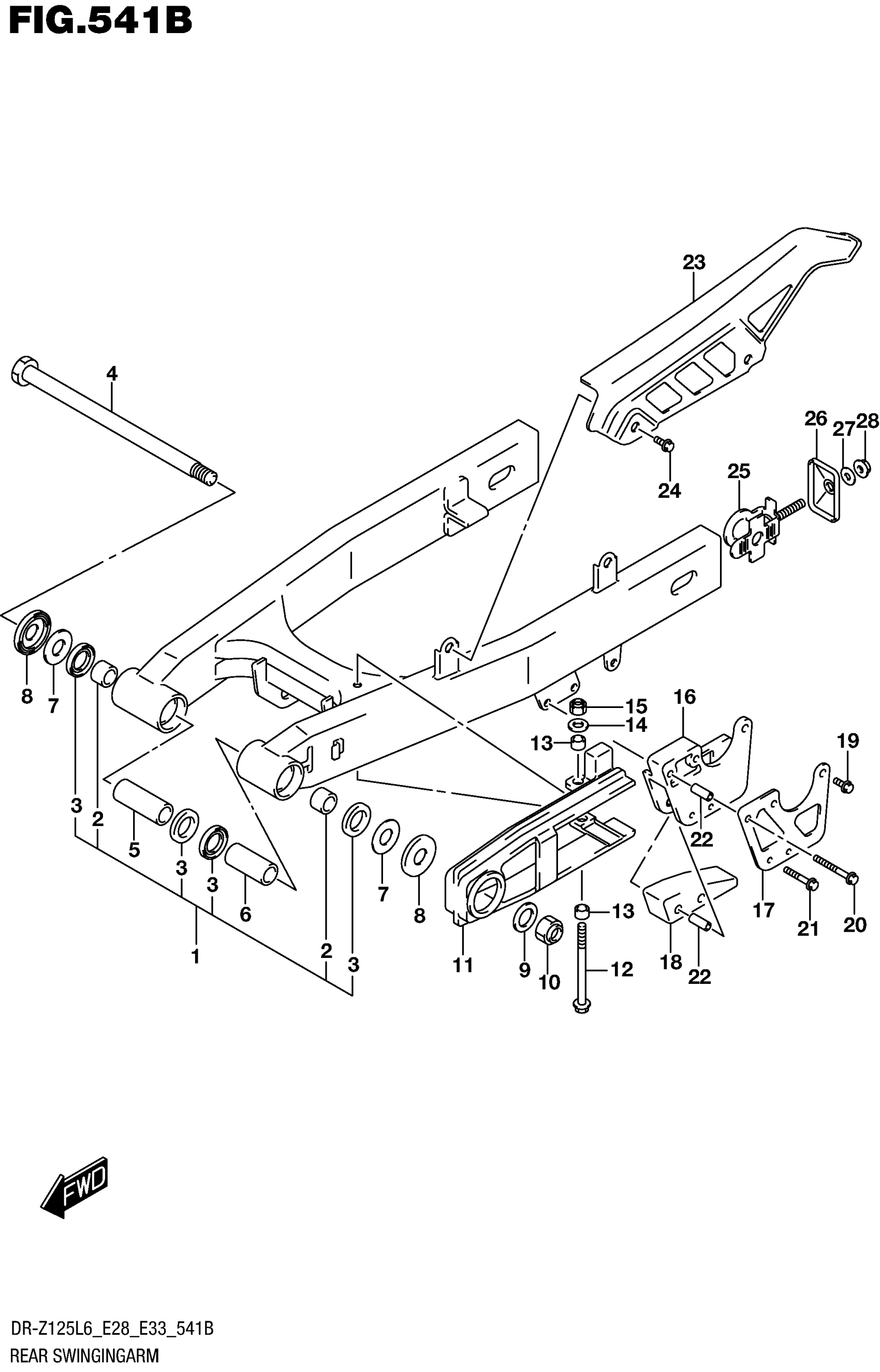 Suzuki DR-Z125L6 (2016) REAR SWINGINGARM (DR-Z125LL6 E28) Diagram