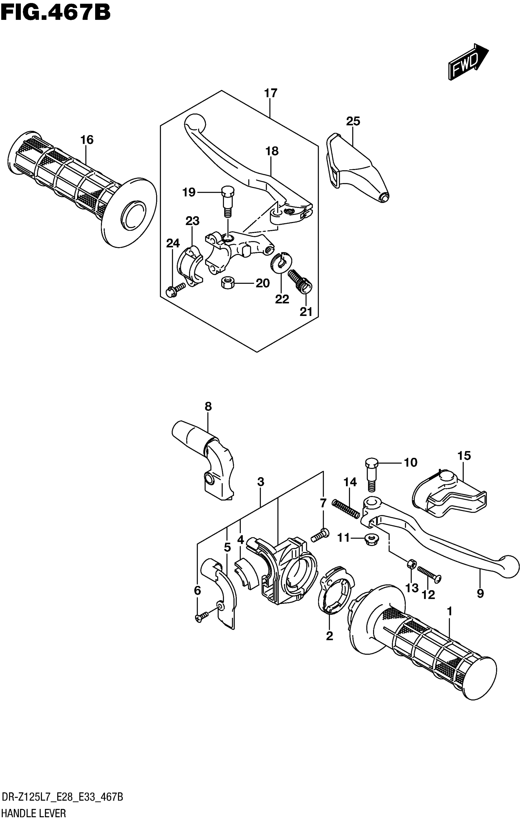 Suzuki DR-Z125L7 (2017) HANDLE LEVER (DR-Z125L E28) Diagram