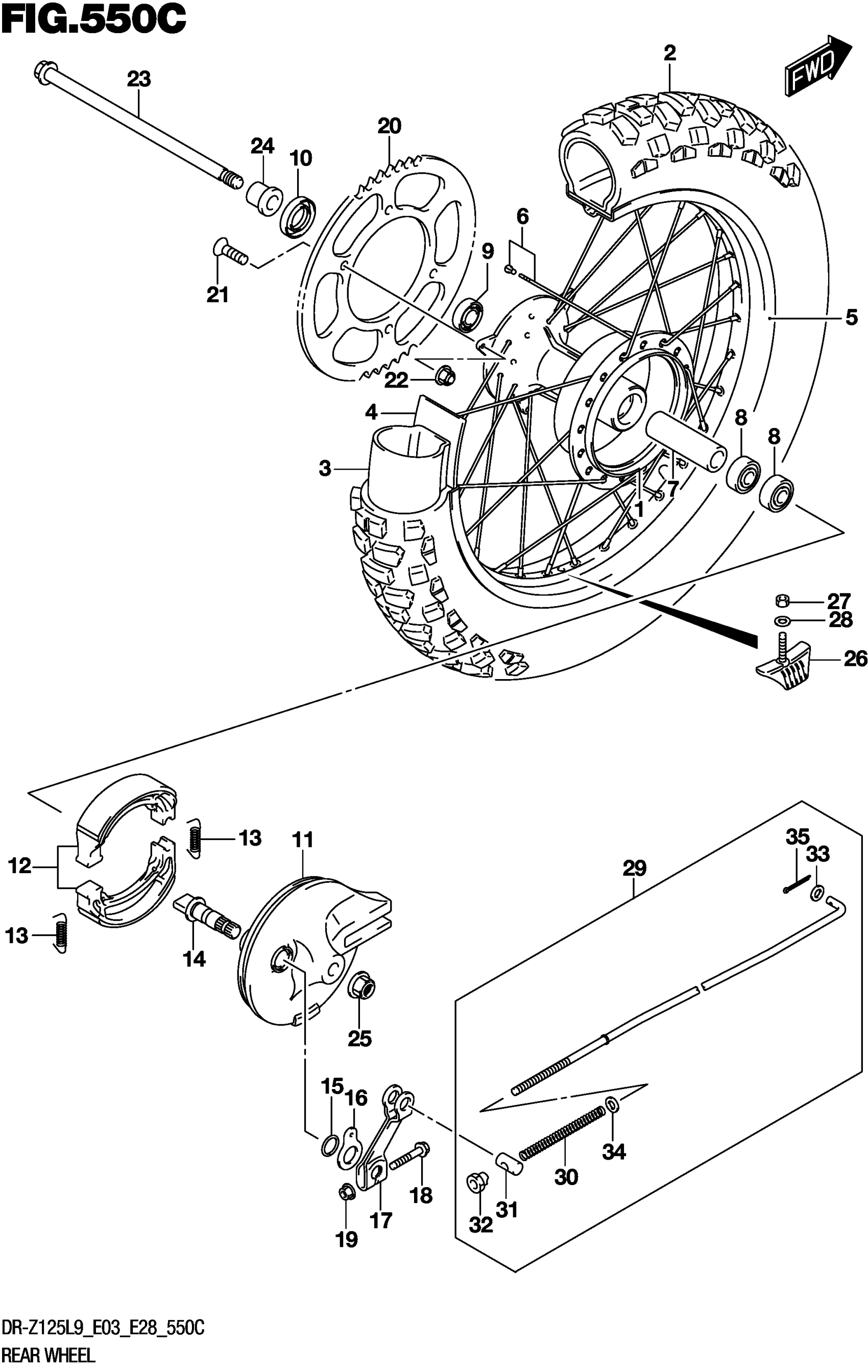 Suzuki DR-Z125L9 (2019) REAR WHEEL (DR-Z125LL9 E28) Diagram