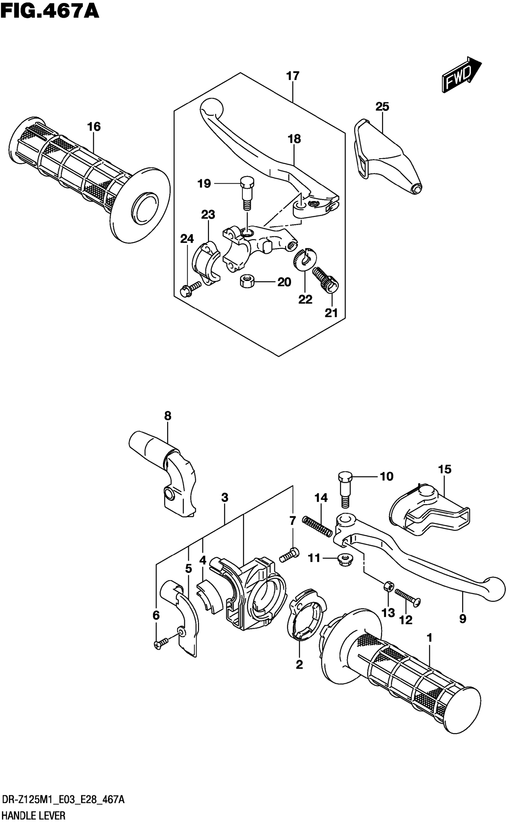 Suzuki DR-Z125LM1 (2021) HANDLE LEVER (DR-Z125L) Diagram