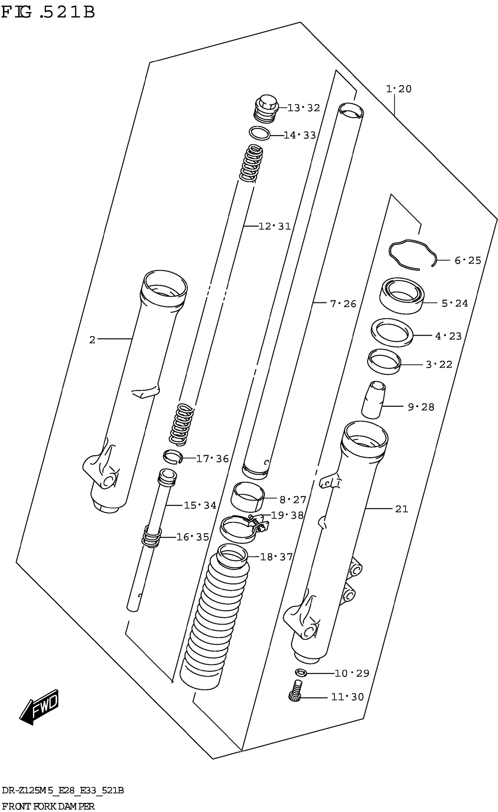 Suzuki DR-Z125LM5 (2025) FRONT FORK DAMPER (DR-Z125L:E33) Diagram
