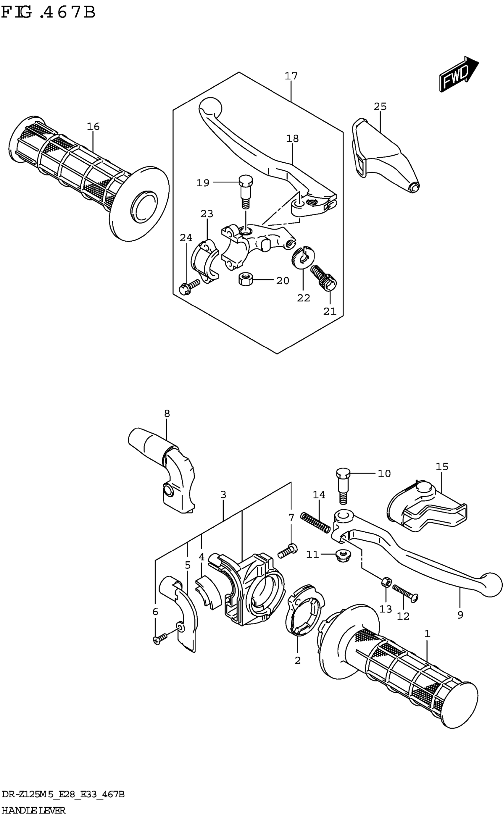 Suzuki DR-Z125LM5 (2025) HANDLE LEVER (DR-Z125L) Diagram