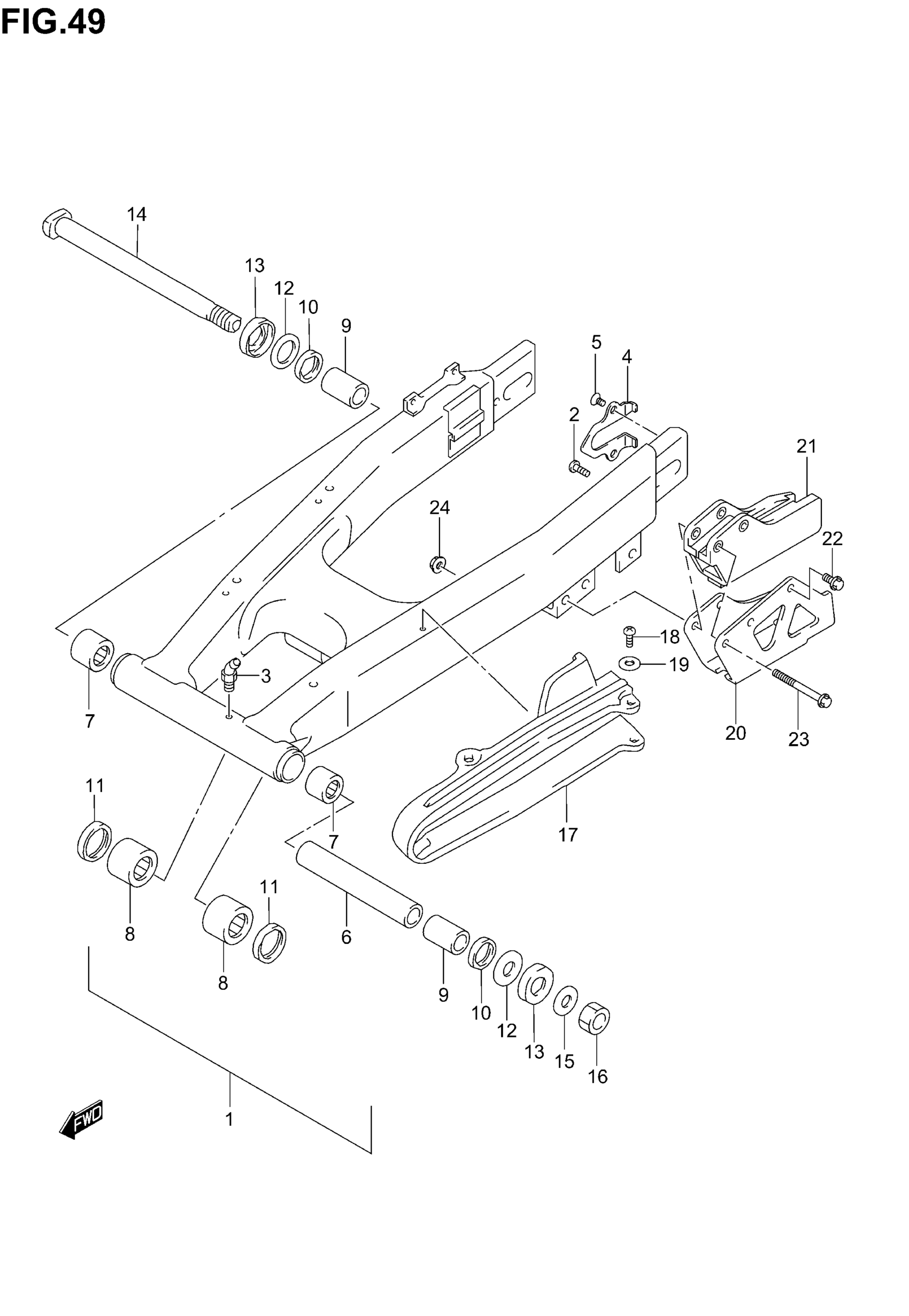 SWINGING ARM ASSY, REAR | Includes Item(s) 2 - 8
