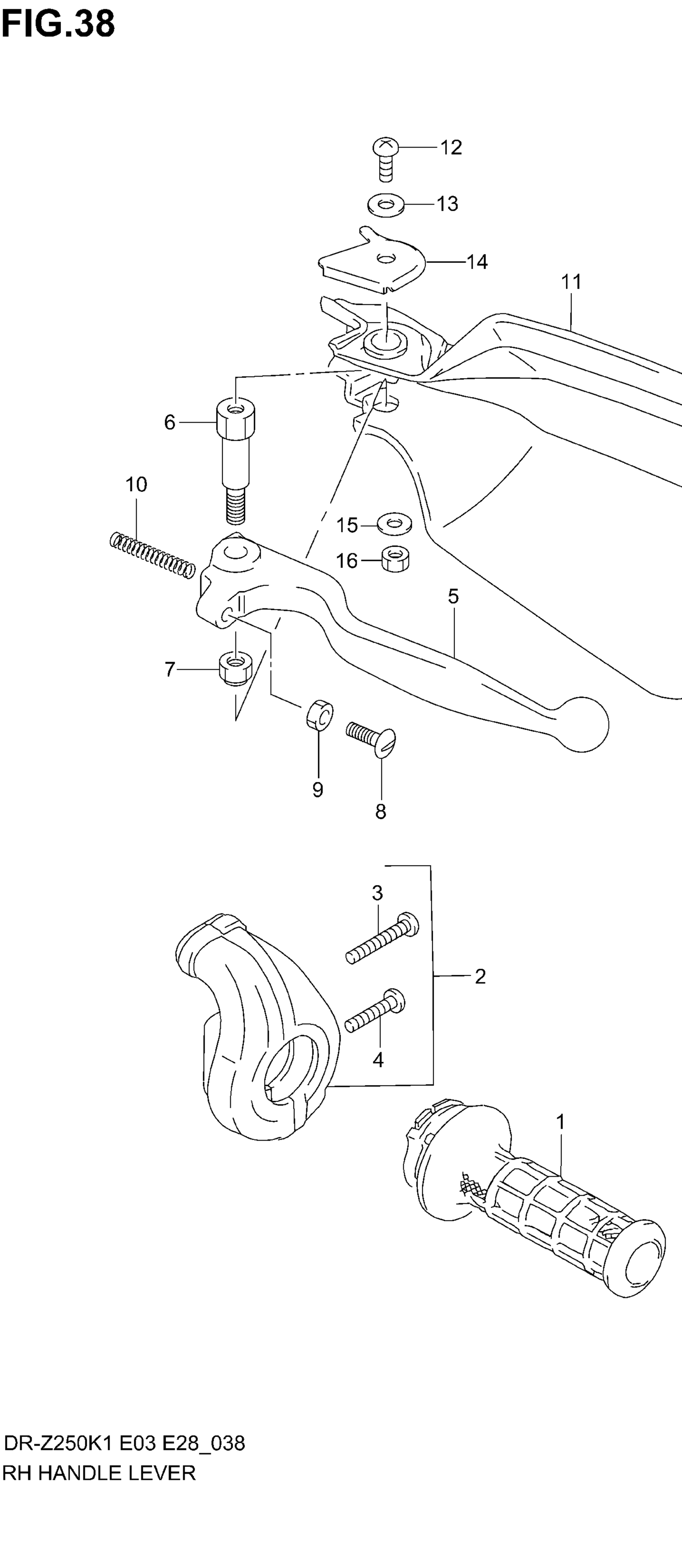 Suzuki DR-Z250 (2005) RH HANDLE LEVER Diagram