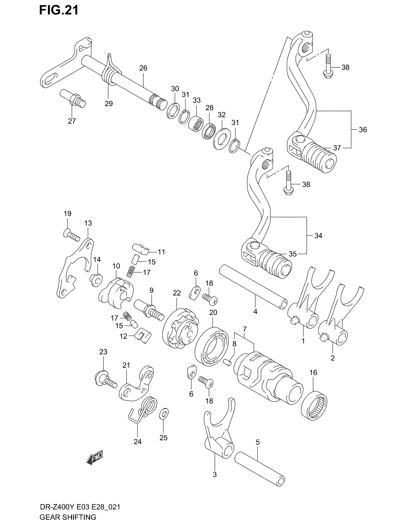 LEVER ASSY,GEAR | DR-Z400K3/K4; Includes Item(s) 35 This part replaces 25600-37E11.