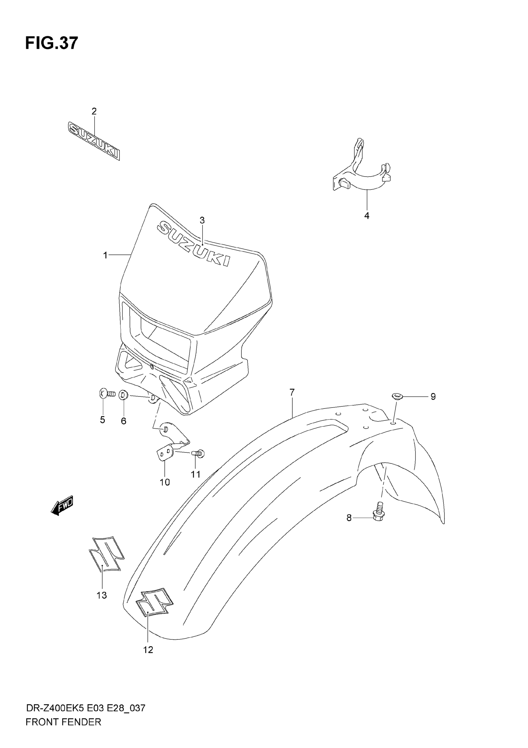 Suzuki DR-Z400E (2007) FRONT FENDER Diagram