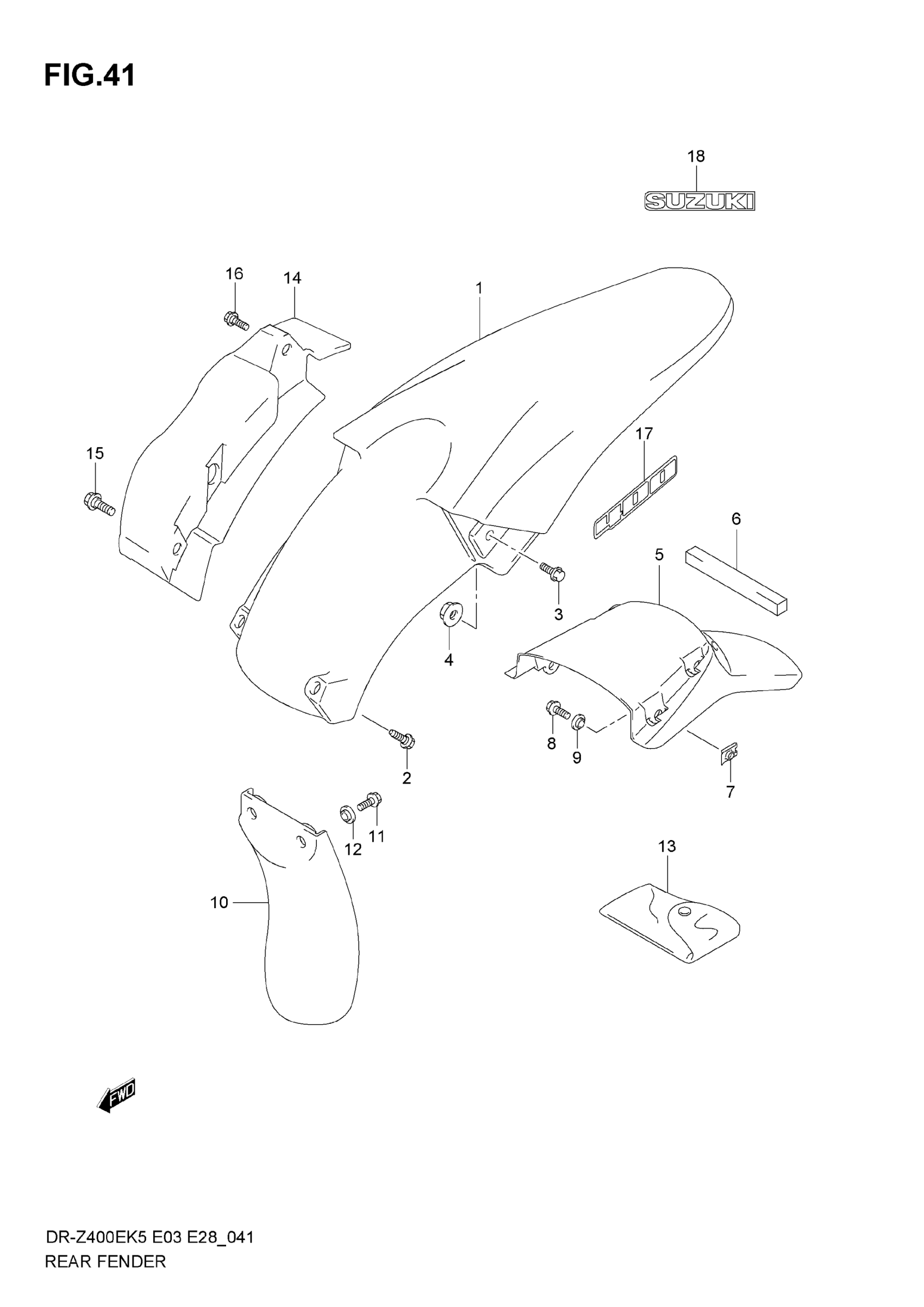 Suzuki DR-Z400E (2007) REAR FENDER Diagram