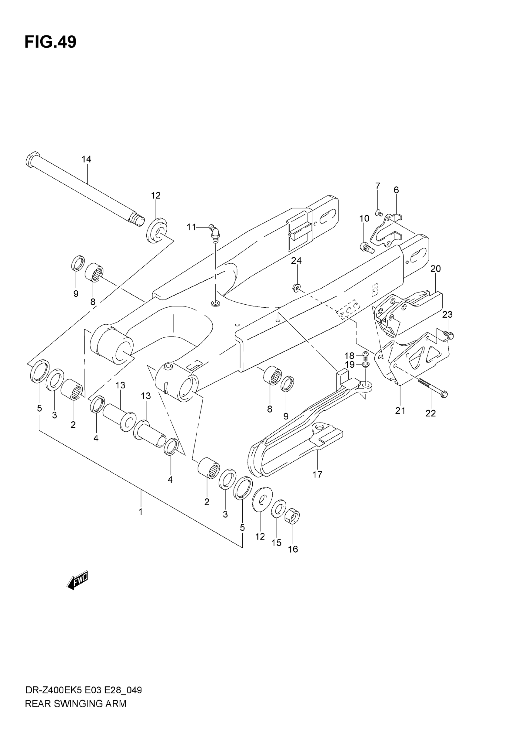 Suzuki DR-Z400E (2007) REAR SWINGING ARM Diagram