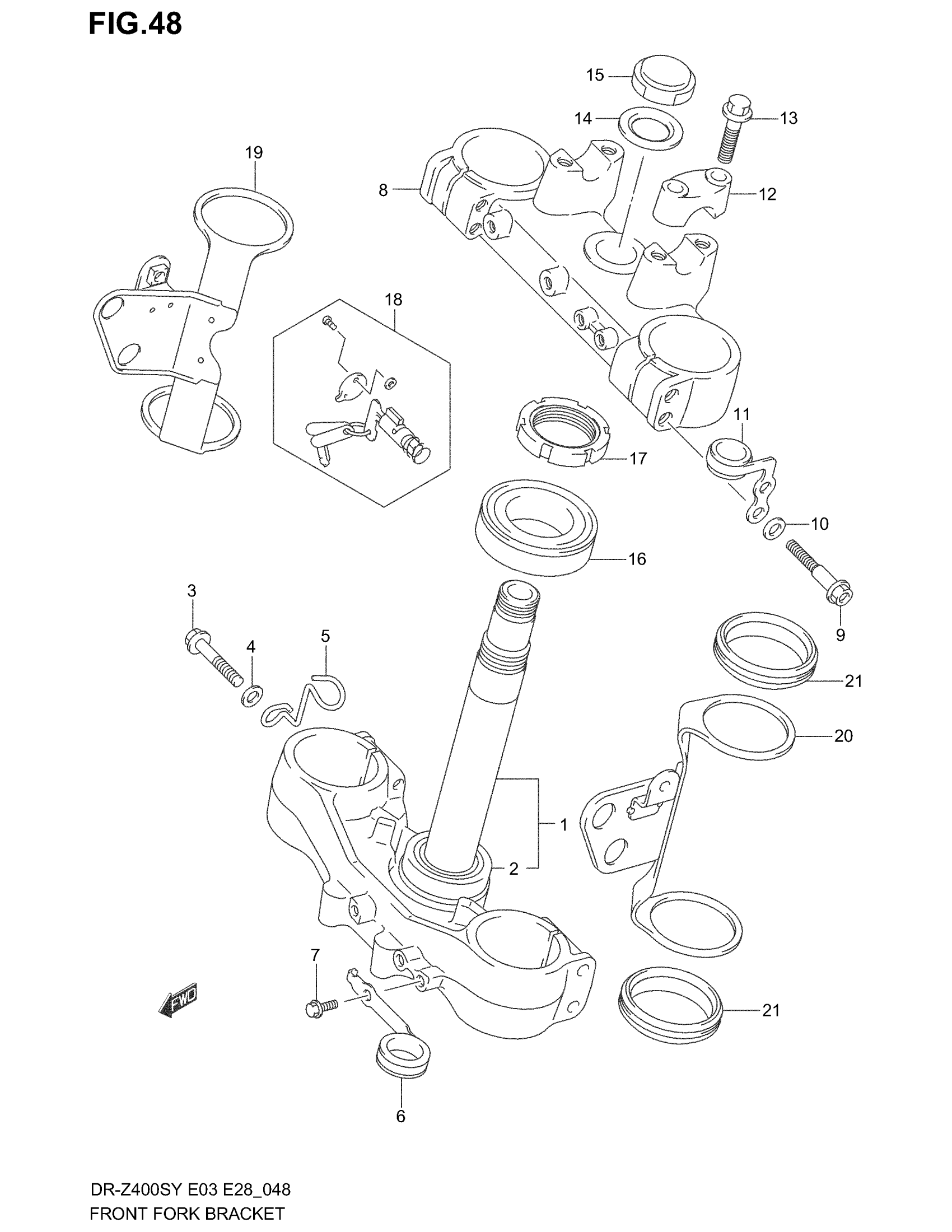 Suzuki DR-Z400S (2004) FRONT FORK BRACKET Diagram