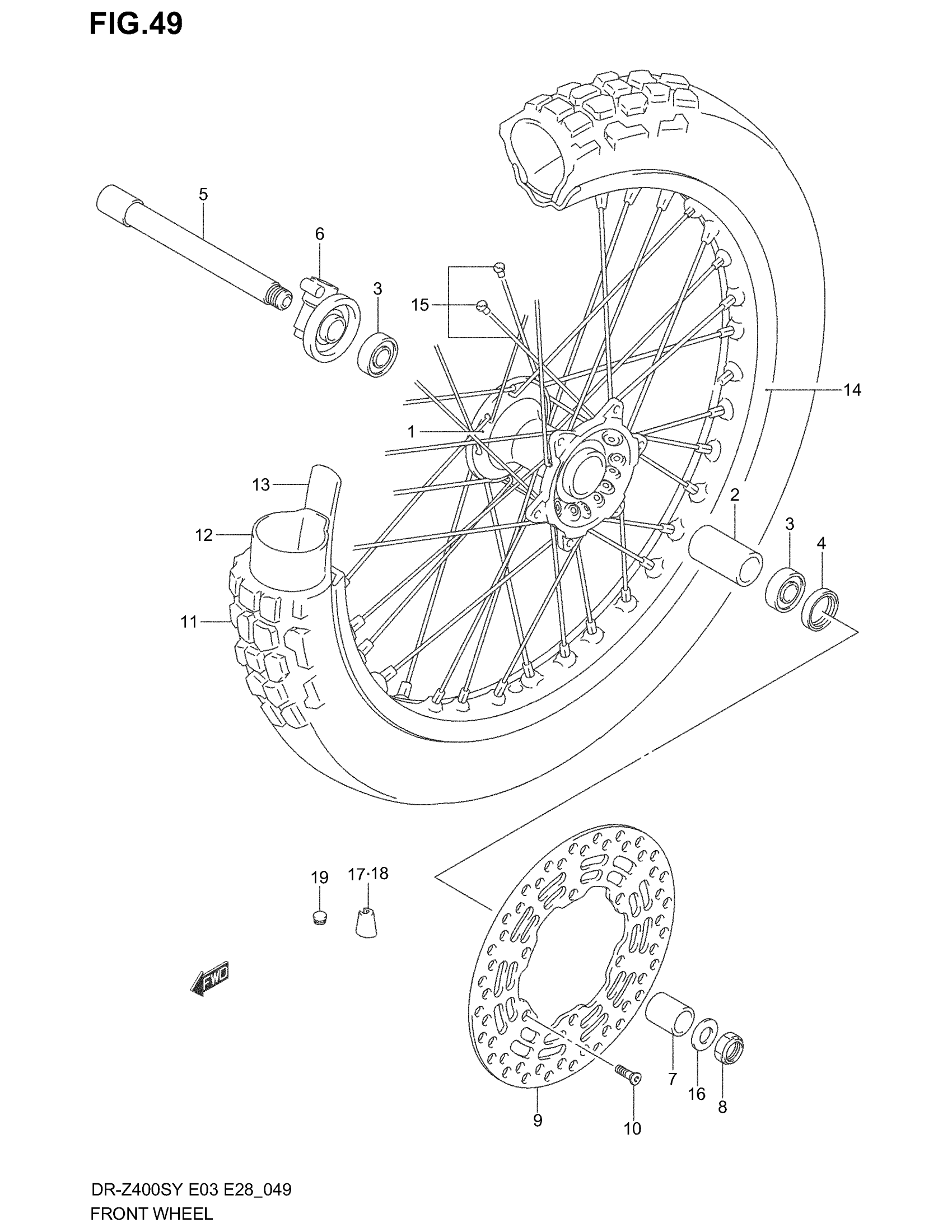 Suzuki DR-Z400S (2004) FRONT WHEEL Diagram