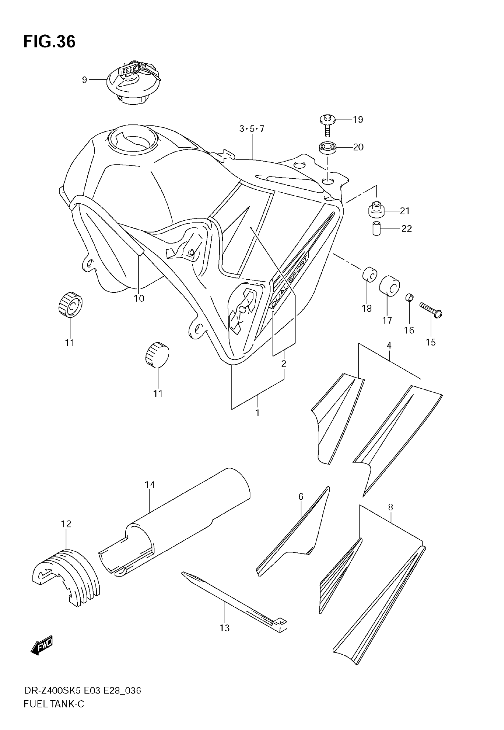 Suzuki DR-Z400S (2009) FUEL TANK (MODEL K5/K6/K7/K8) Diagram