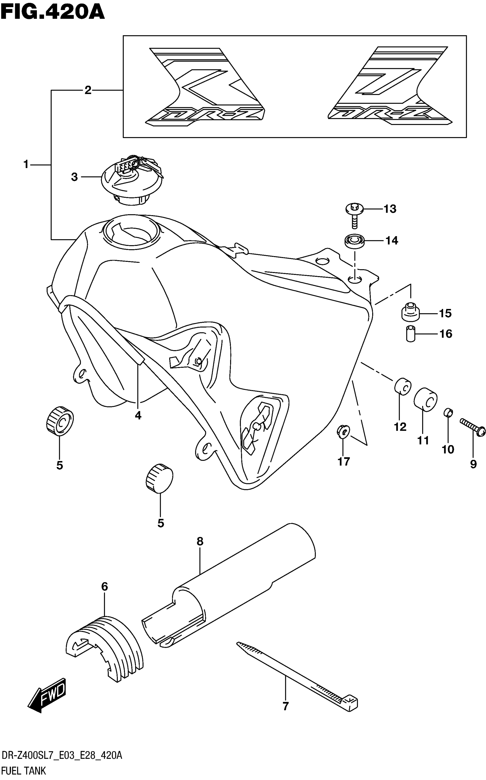 Suzuki DR-Z400SL7 (2017) FUEL TANK (DR-Z400SL7 E03) Diagram