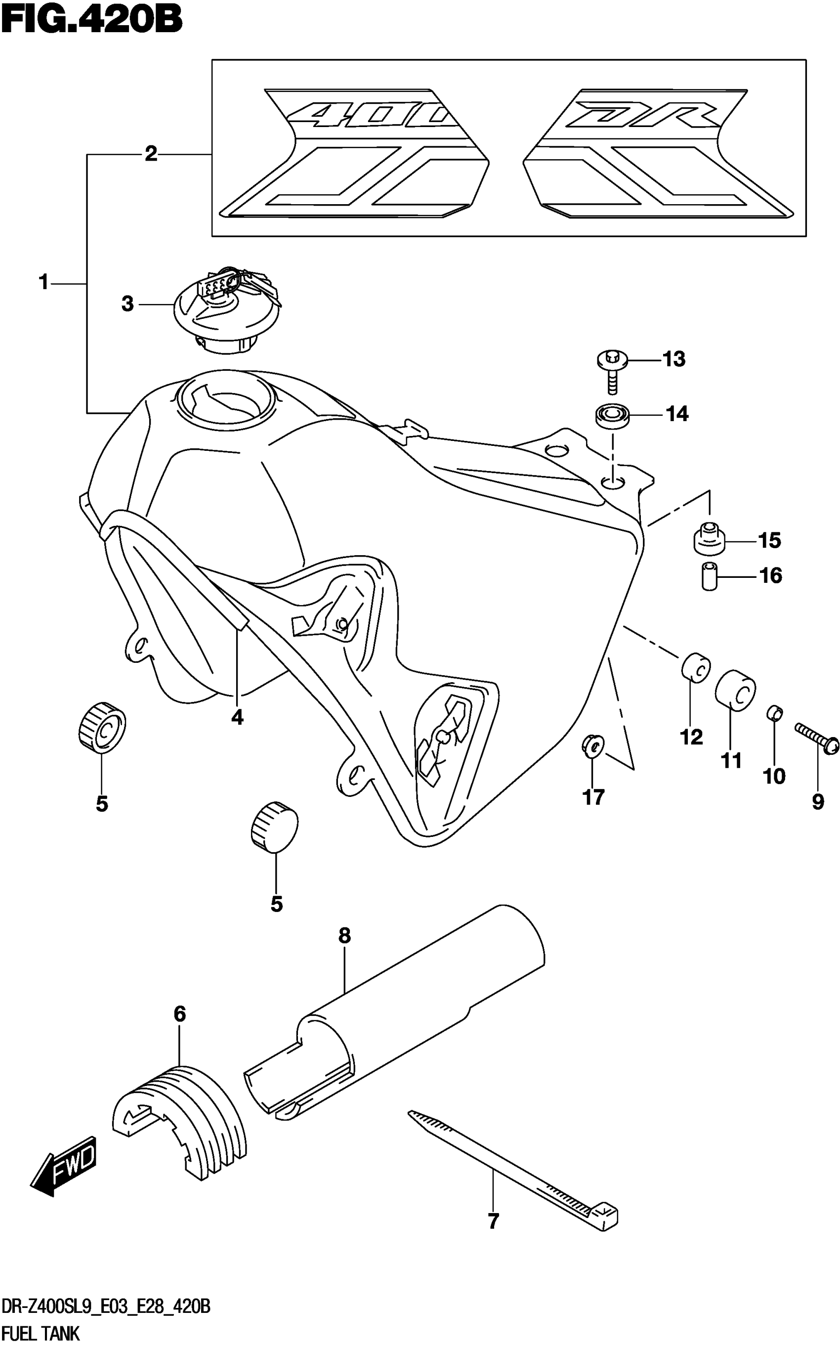 Suzuki DR-Z400SL9 (2019) FUEL TANK (DR-Z400SL9 E28) Diagram