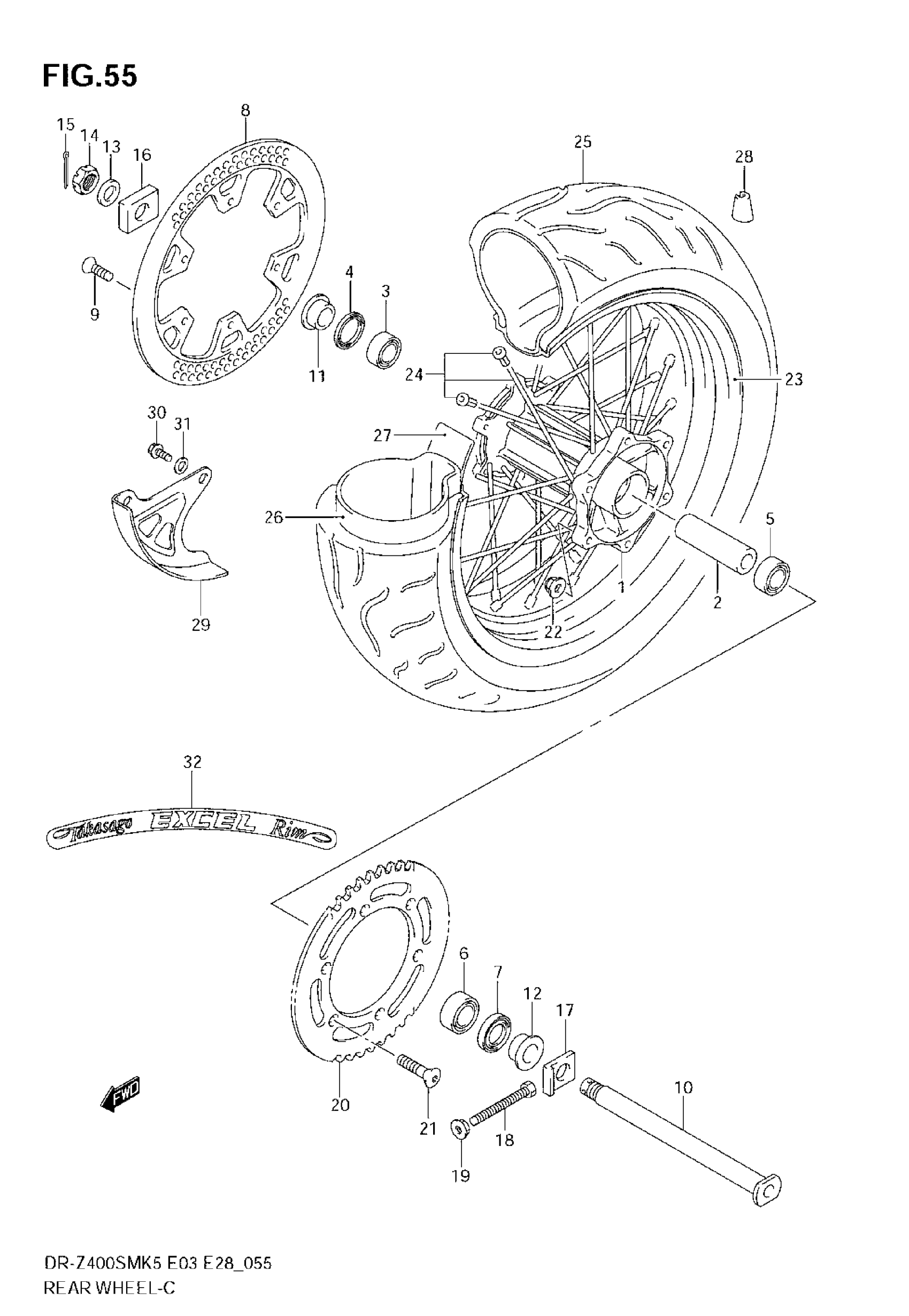 Suzuki DR-Z400SM (2008) REAR WHEEL (MODEL K5/K6) Diagram