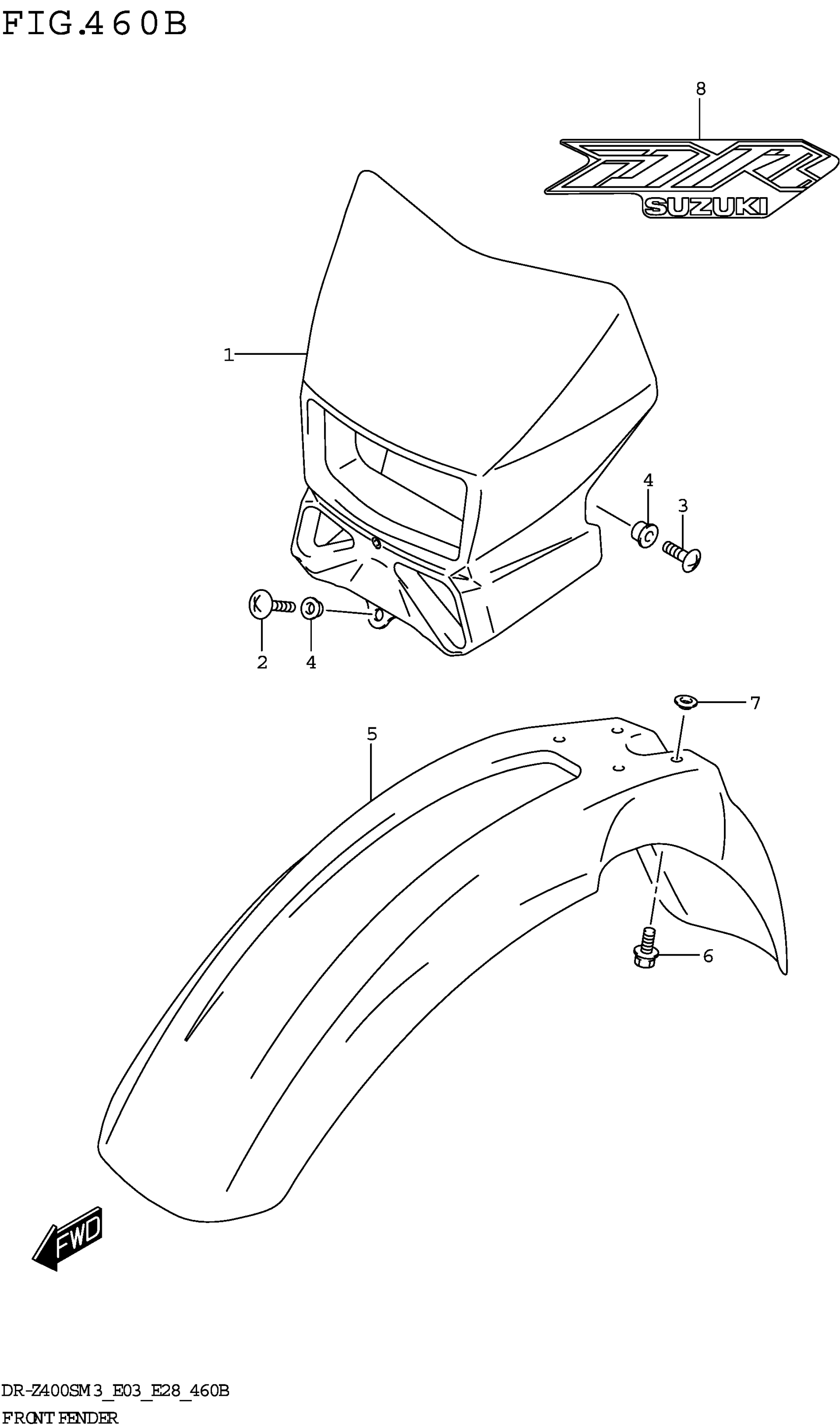 Suzuki DR-Z400SM3 (2023) FRONT FENDER (DR-Z400SM3 E28) Diagram