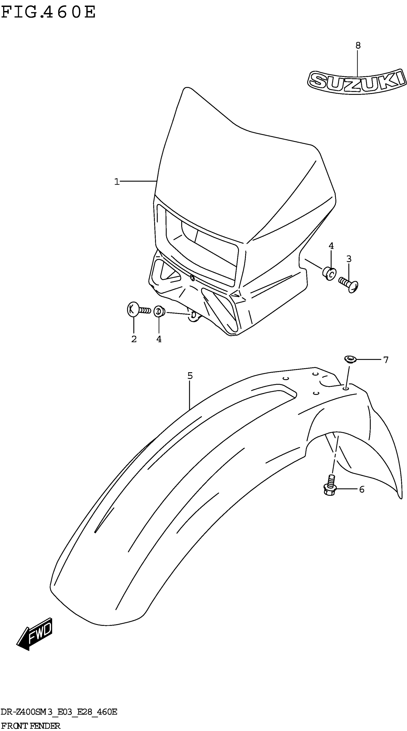 Suzuki DR-Z400SM3 (2023) FRONT FENDER (DR-Z400SMM3 E28) Diagram