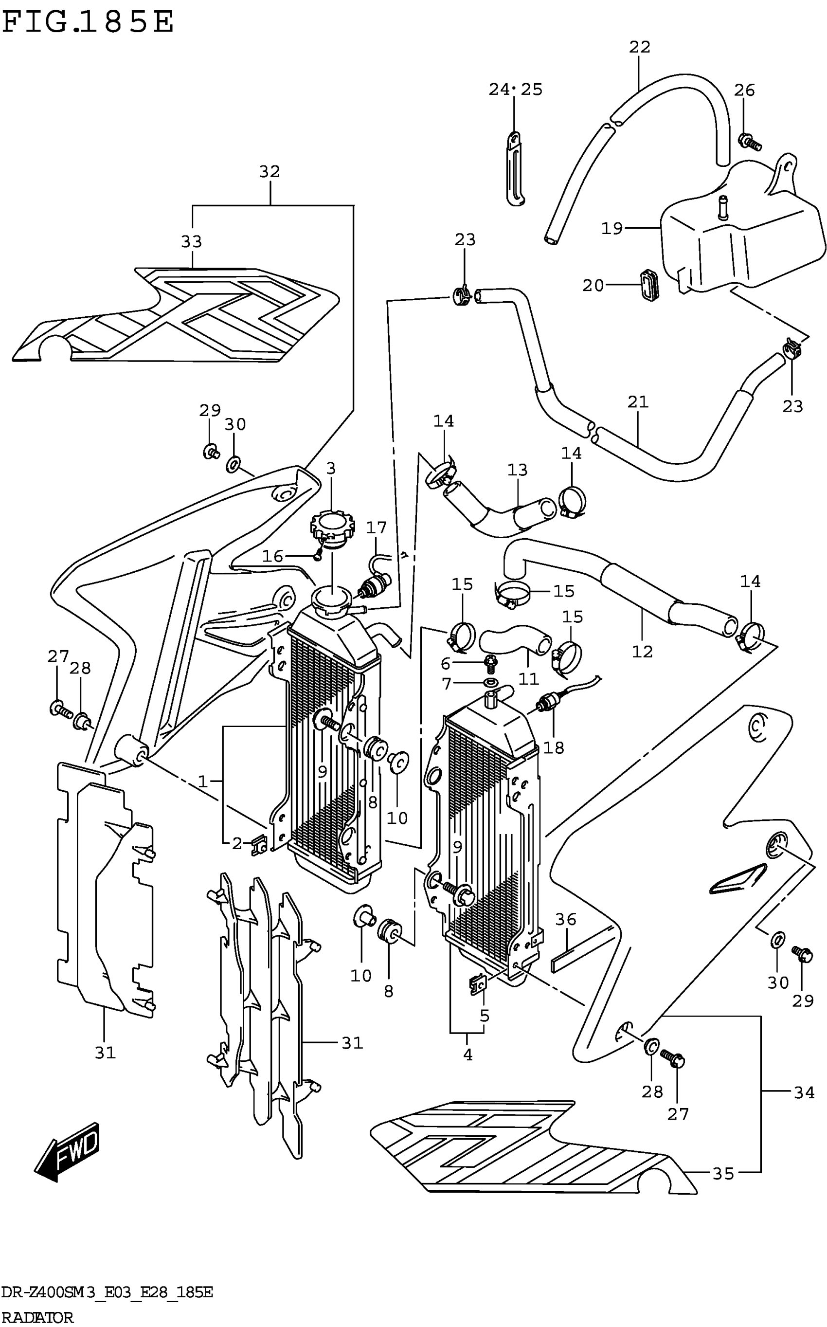 Suzuki DR-Z400SM3 (2023) RADIATOR (DR-Z400SMM3 E28) Diagram