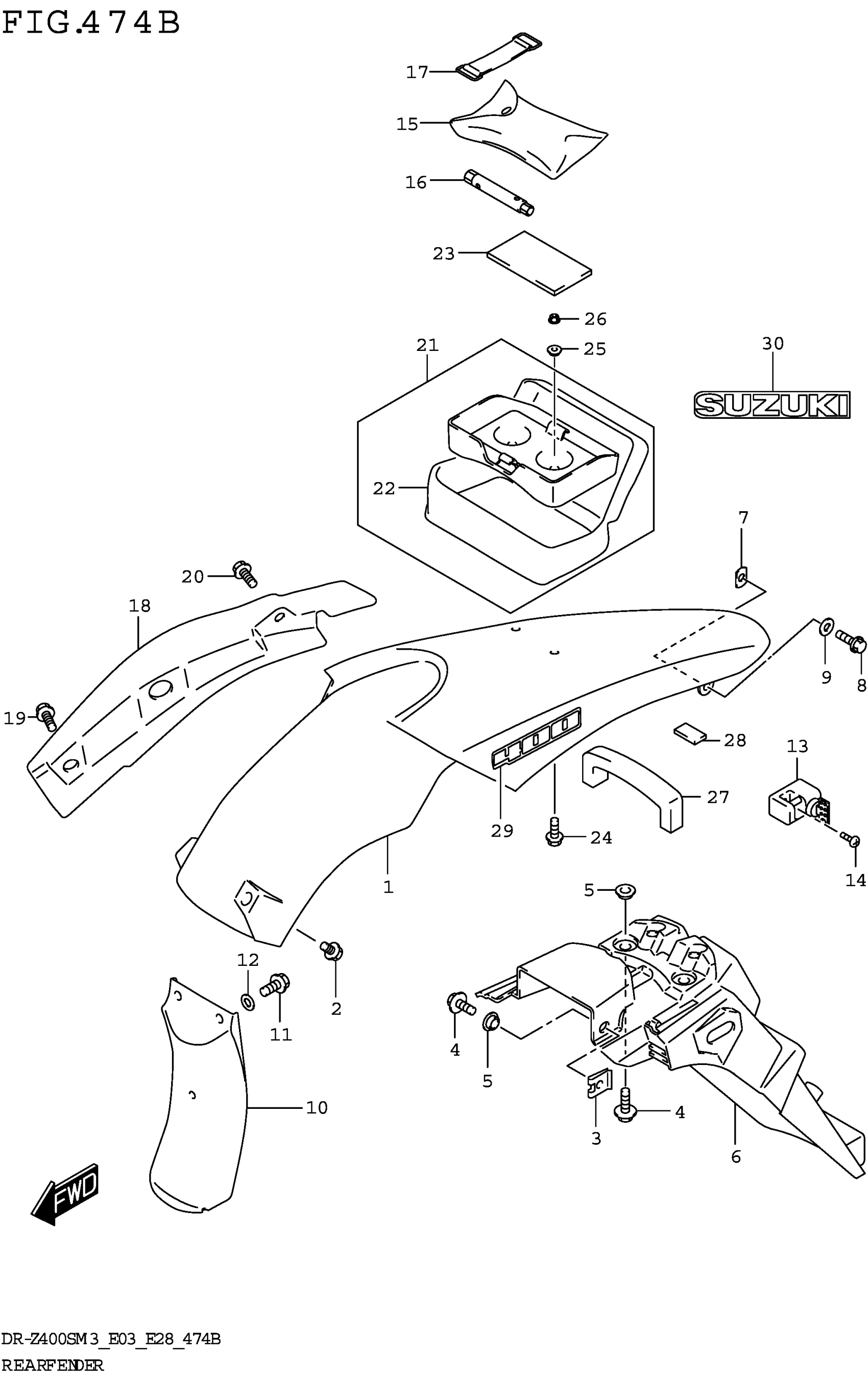 Suzuki DR-Z400SM3 (2023) REAR FENDER (DR-Z400SM3 E28) Diagram