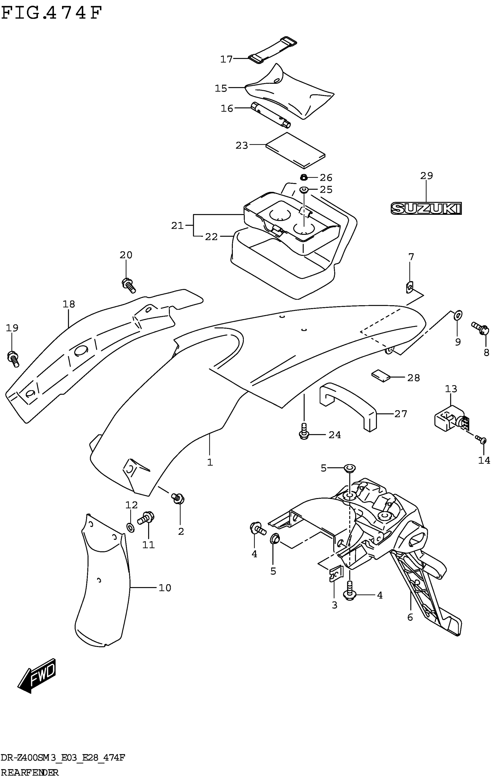 Suzuki DR-Z400SM3 (2023) REAR FENDER (DR-Z400SMM3 E33) Diagram