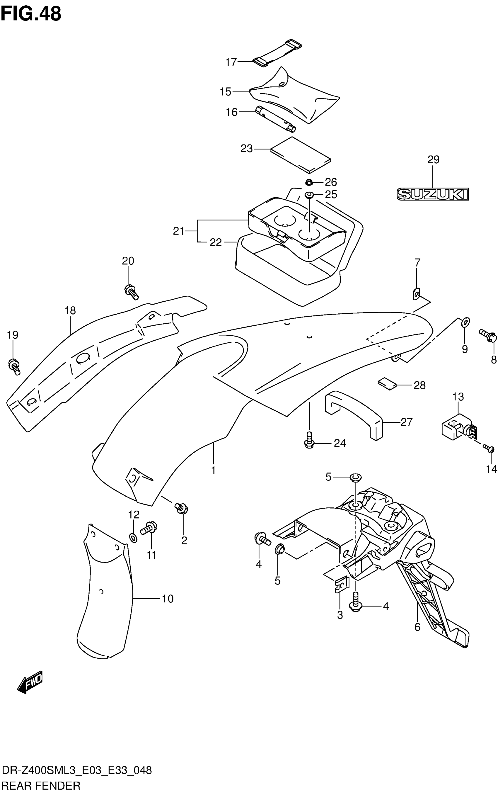 Suzuki DR-Z400SML3 (2013) REAR FENDER Diagram