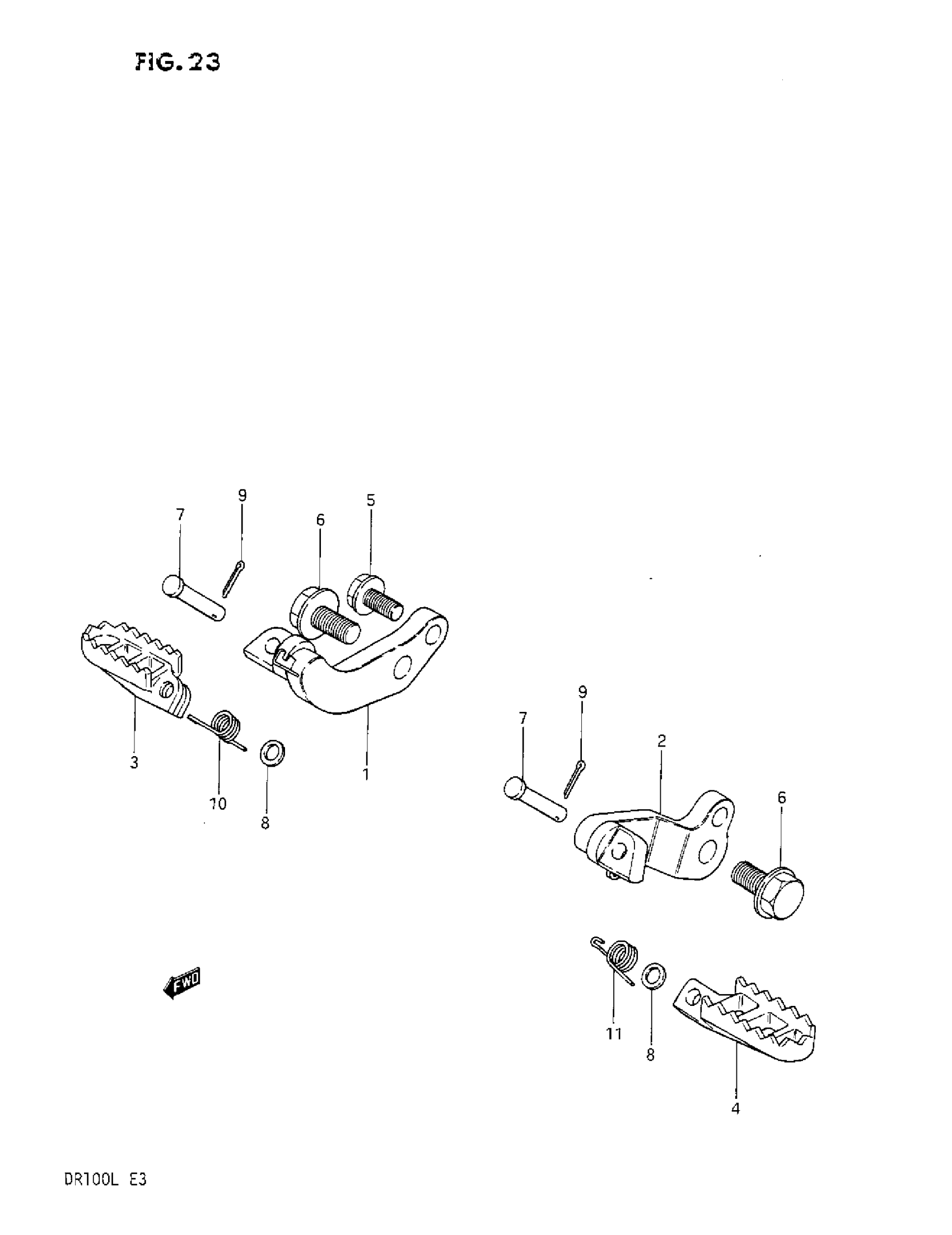 Suzuki DR100 (1987) FOOTREST Diagram