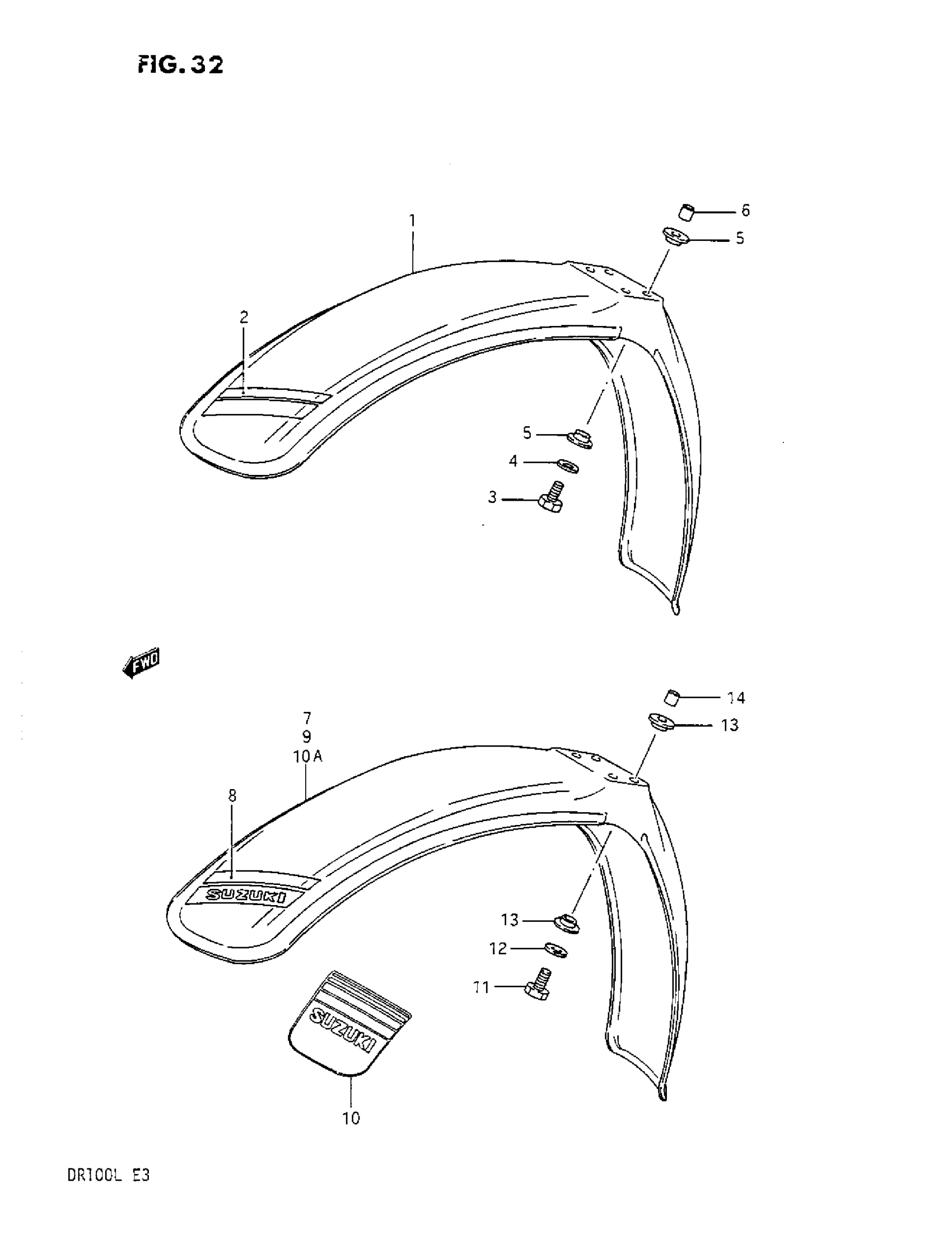 Suzuki DR100 (1987) FRONT FENDER Diagram