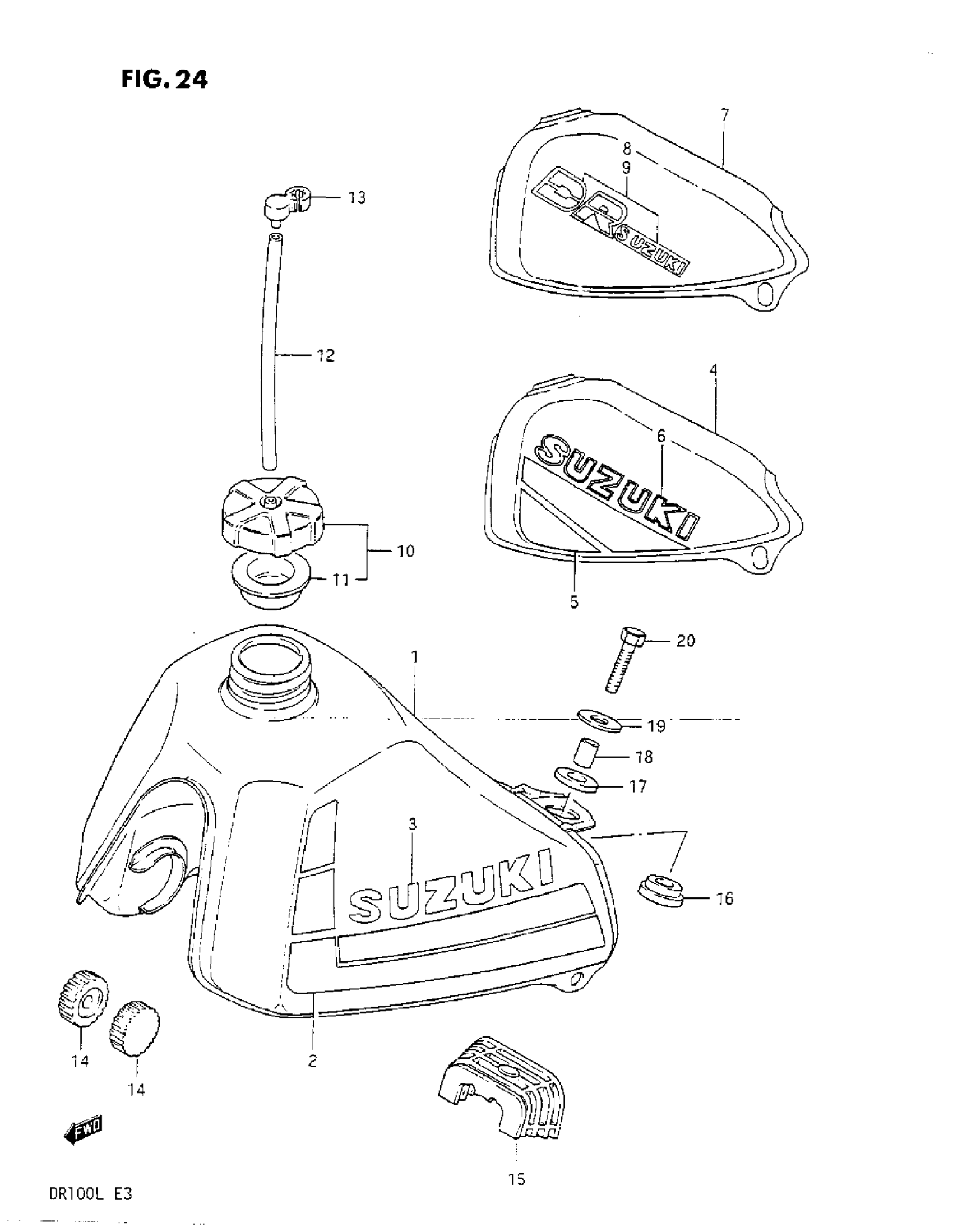 Suzuki DR100 (1987) FUEL TANK (F/G/H) Diagram