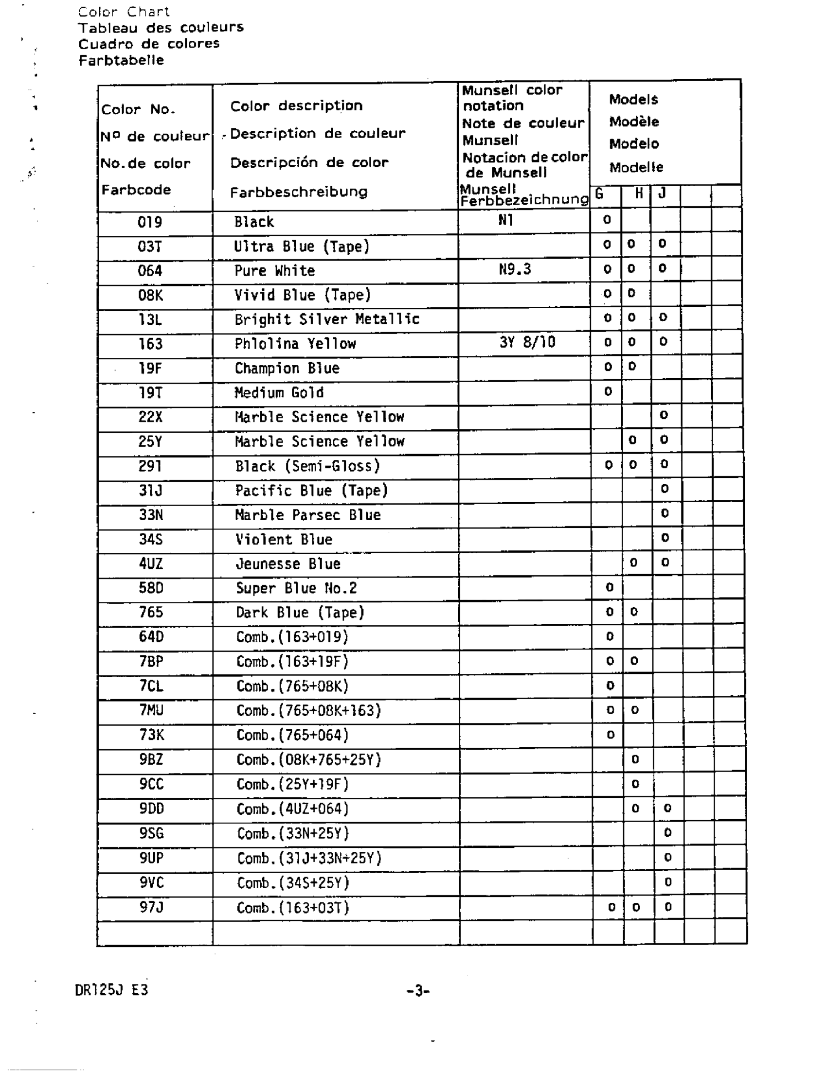 Suzuki DR125 (1987) COLOR CHART Diagram
