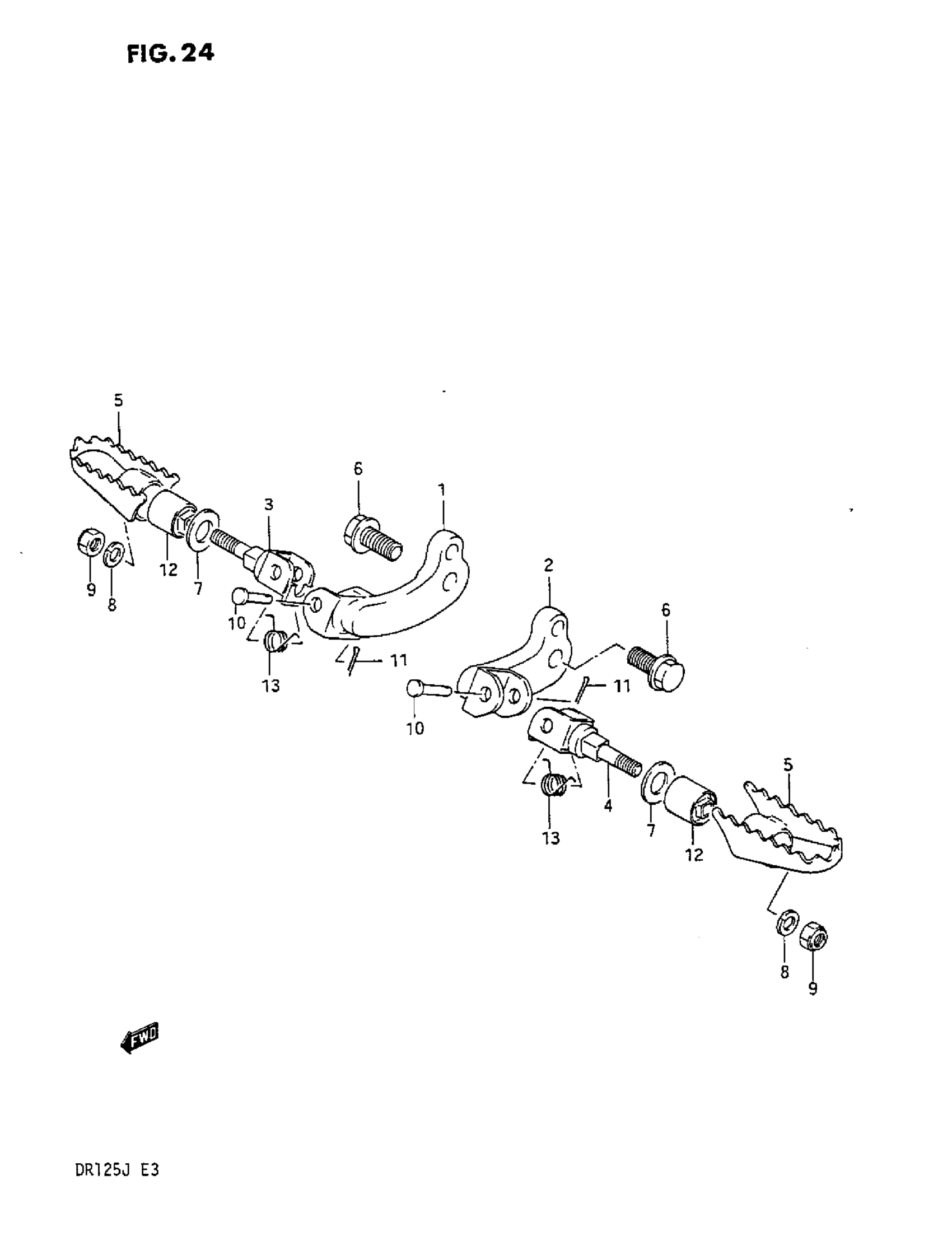 Suzuki DR125 (1987) FOOTREST Diagram