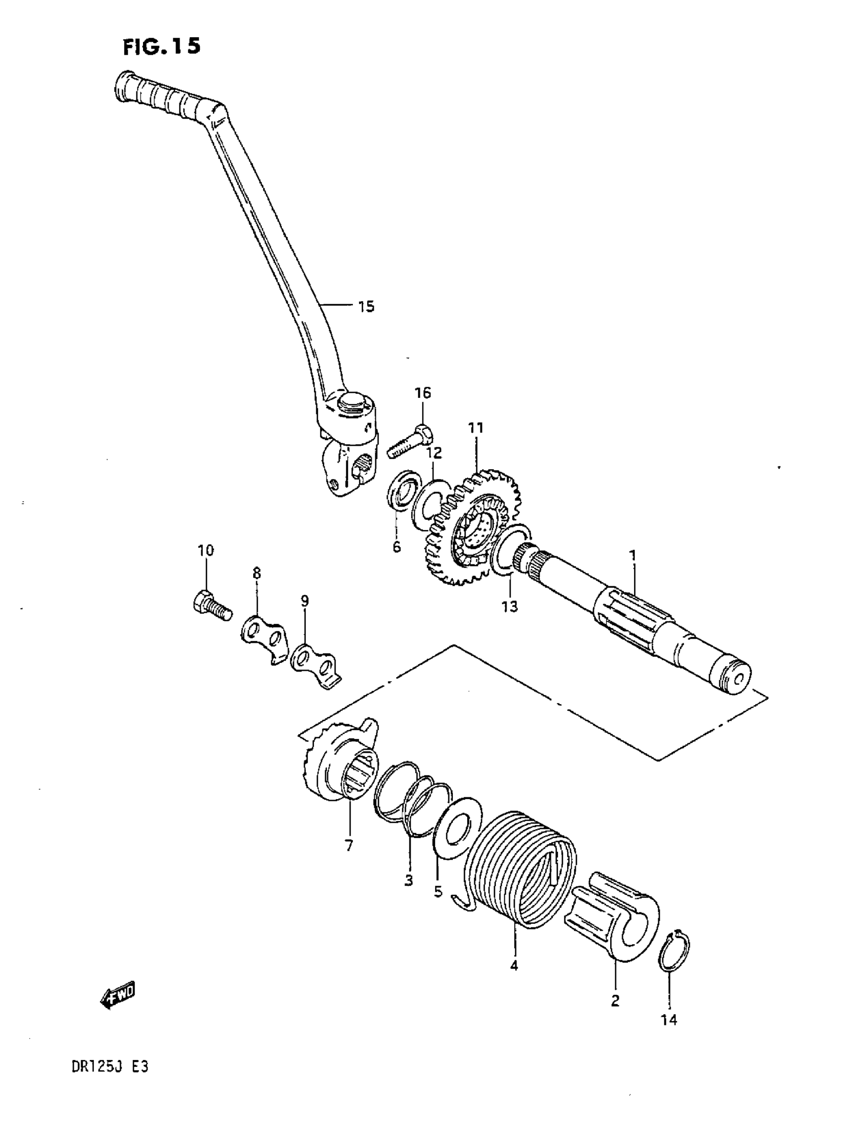 Suzuki DR125 (1987) KICK STARTER Diagram