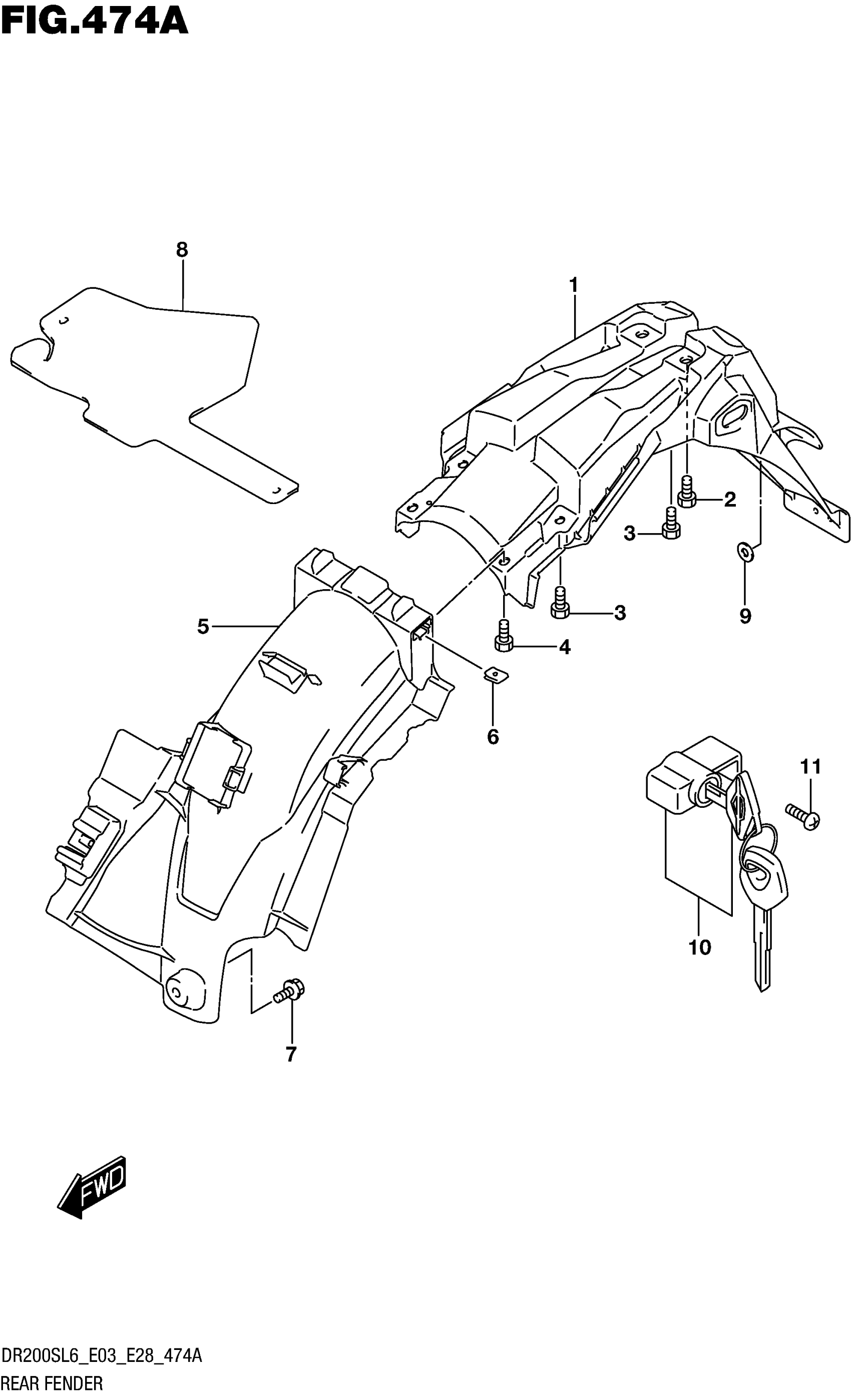 Suzuki DR200SL6 (2016) REAR FENDER Diagram