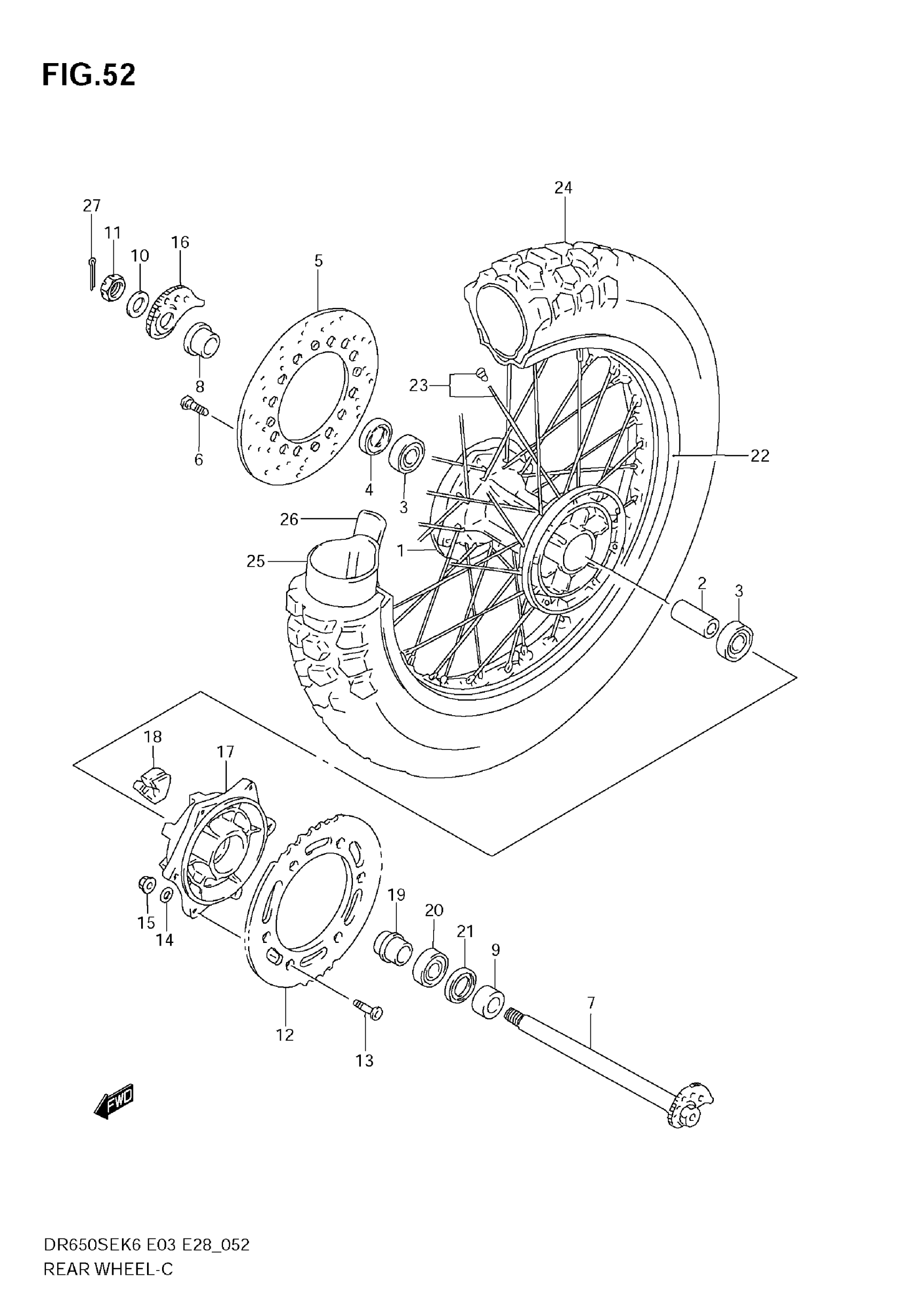 Suzuki DR650SE (2009) REAR WHEEL (MODEL K6/K7) Diagram