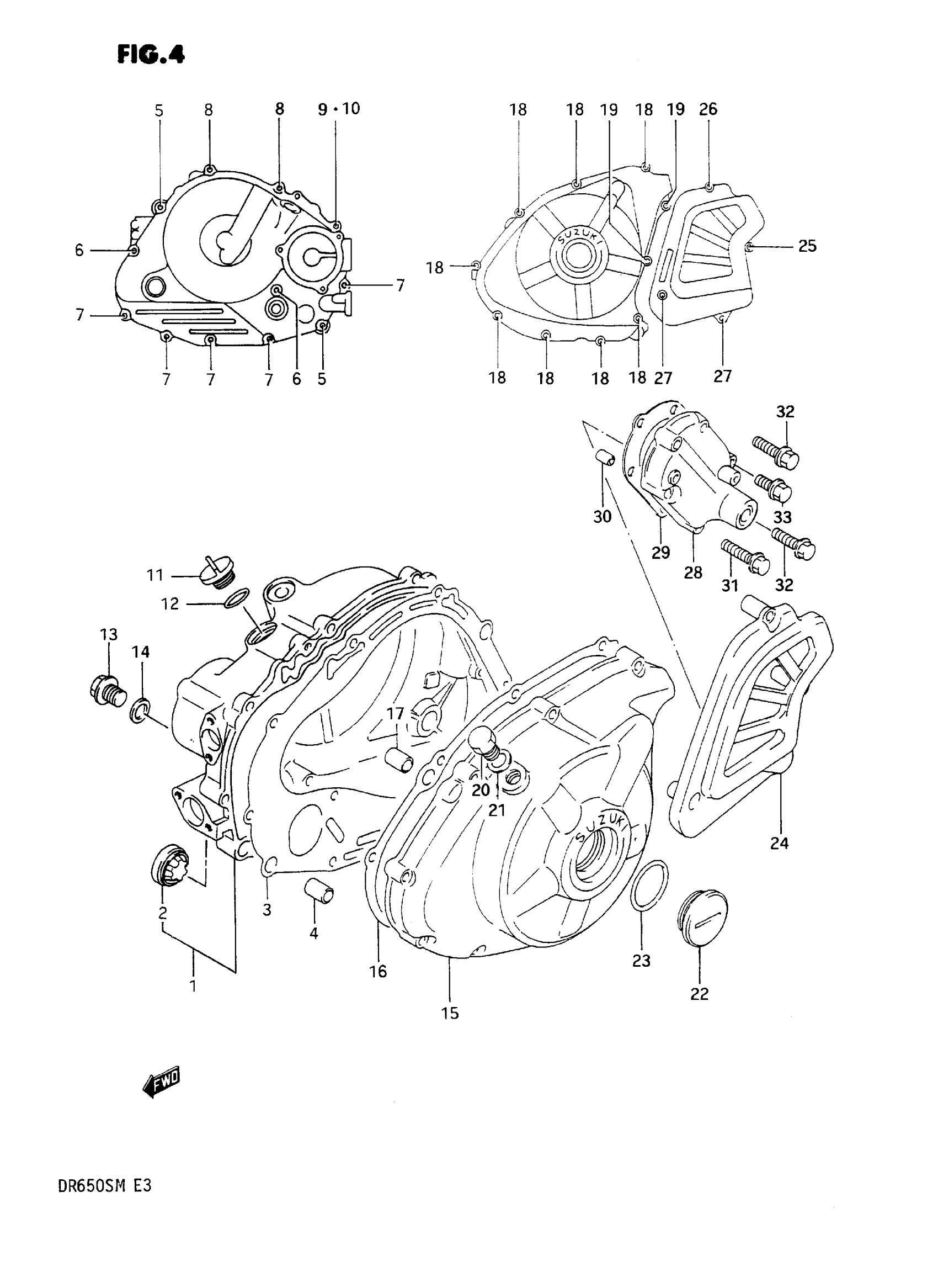 Suzuki DR650SM (1991) CRANKCASE COVER Diagram