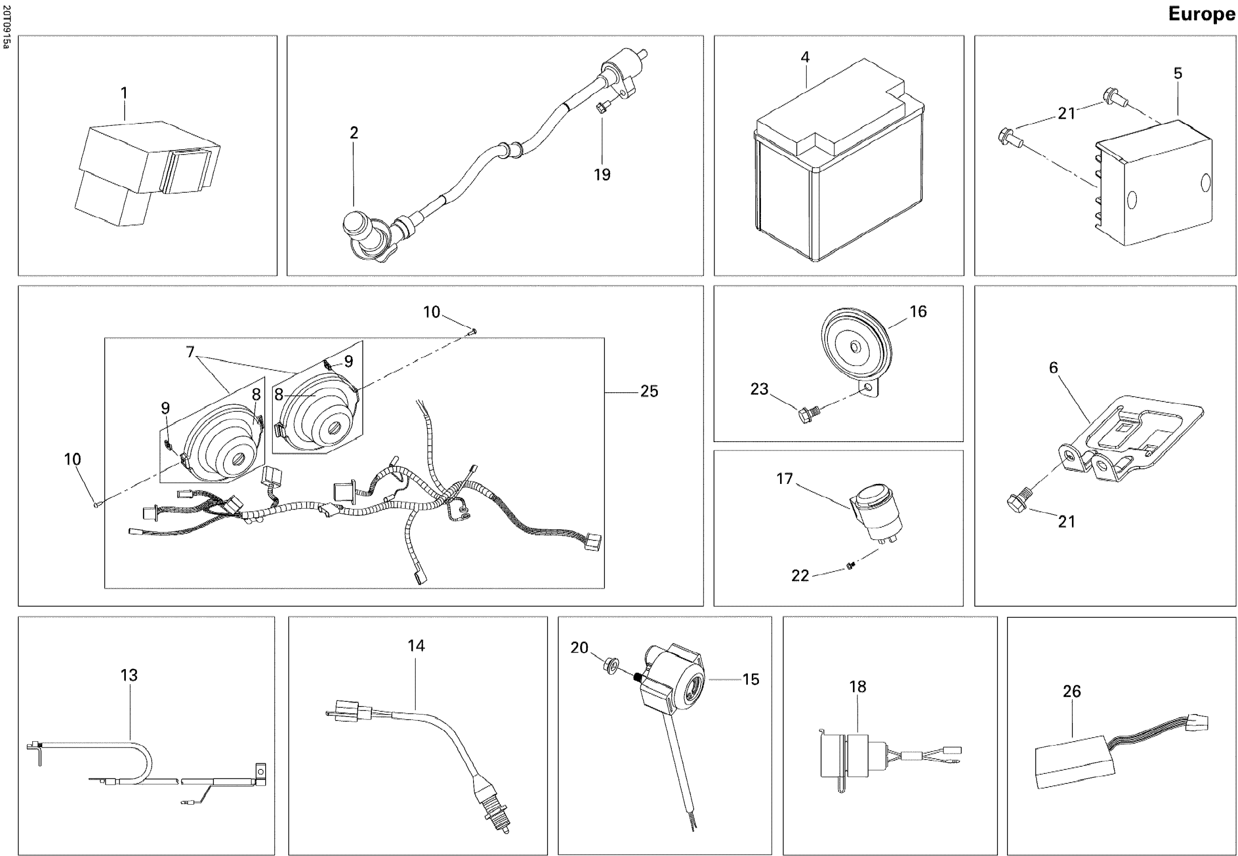 Can-Am DS 250 NA, CE & INT, 2009 Electrical Components Europe Diagram