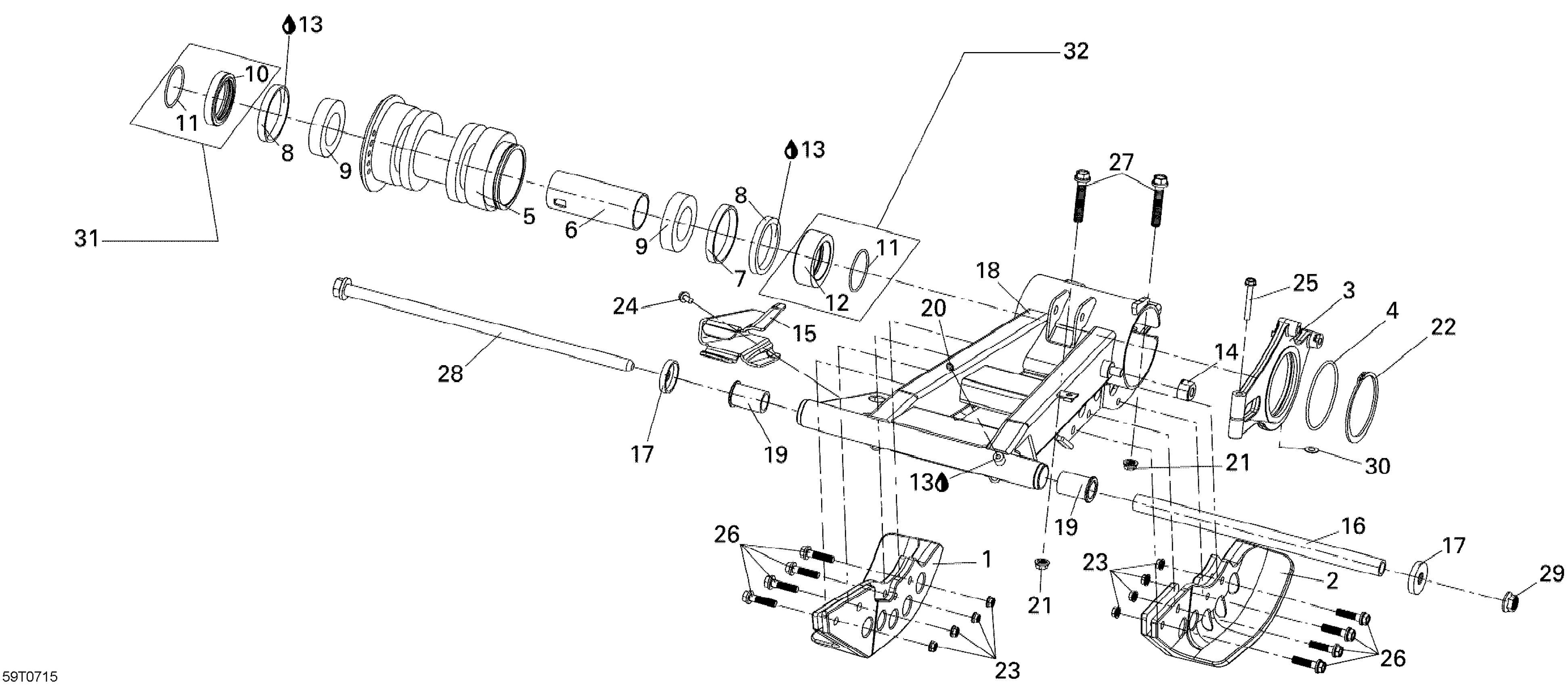 Can-Am DS 250 NA / Inter, 2007 Rear Swing Arm Diagram
