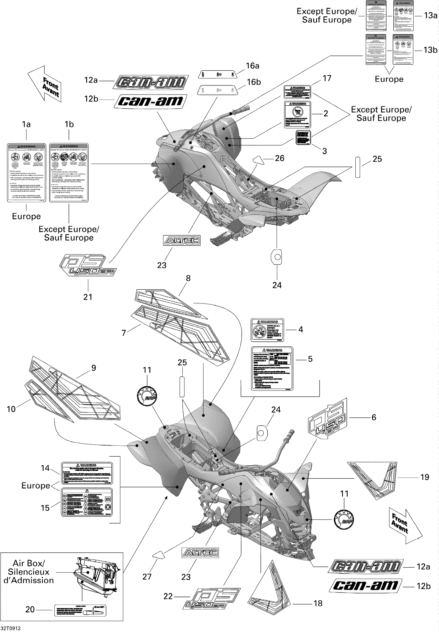 Can-Am DS 450 EFI, 2009 Decals Diagram