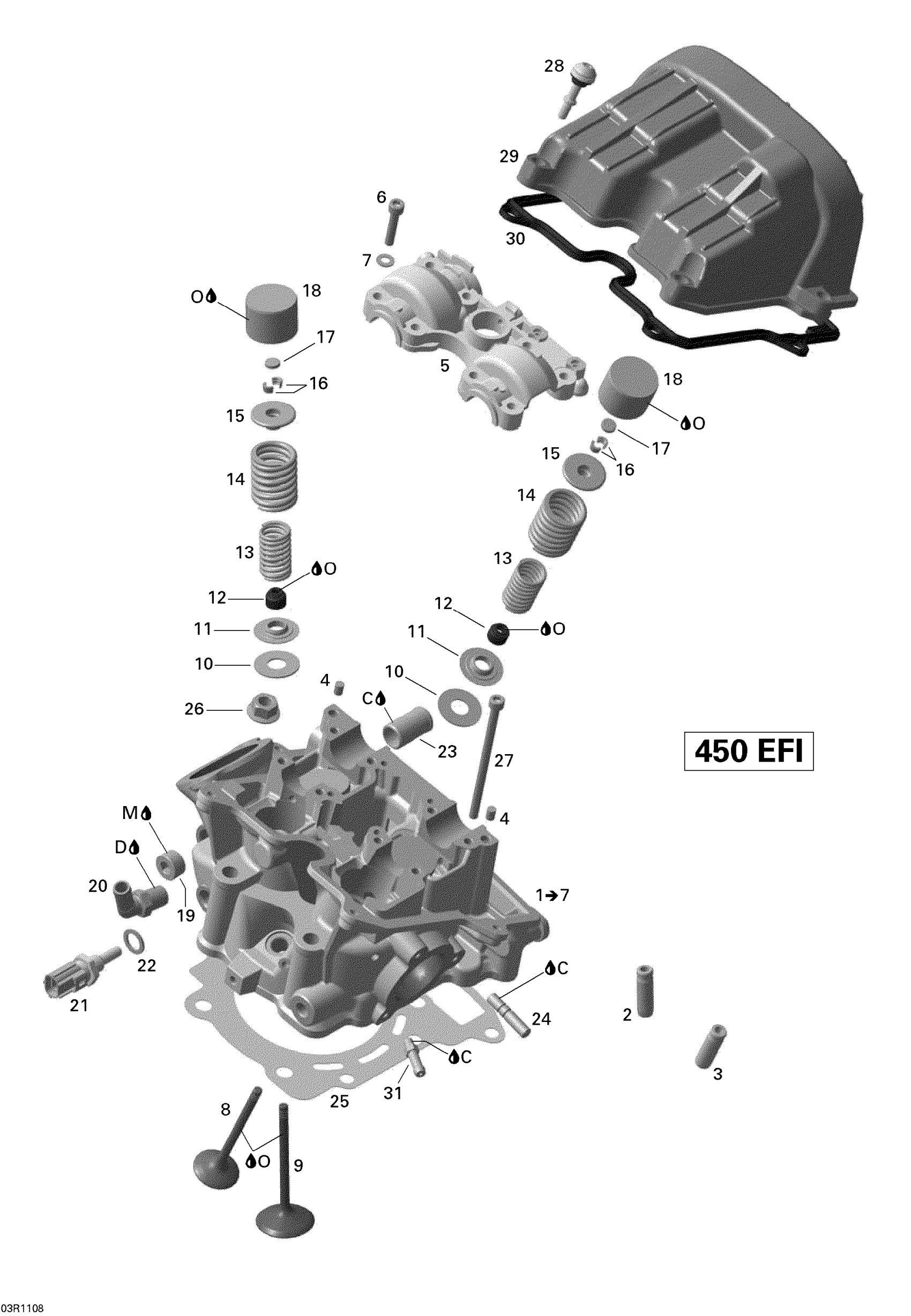Can-Am DS 450 Xxc, Xmx EFI, 2011 Cylinder Head Diagram