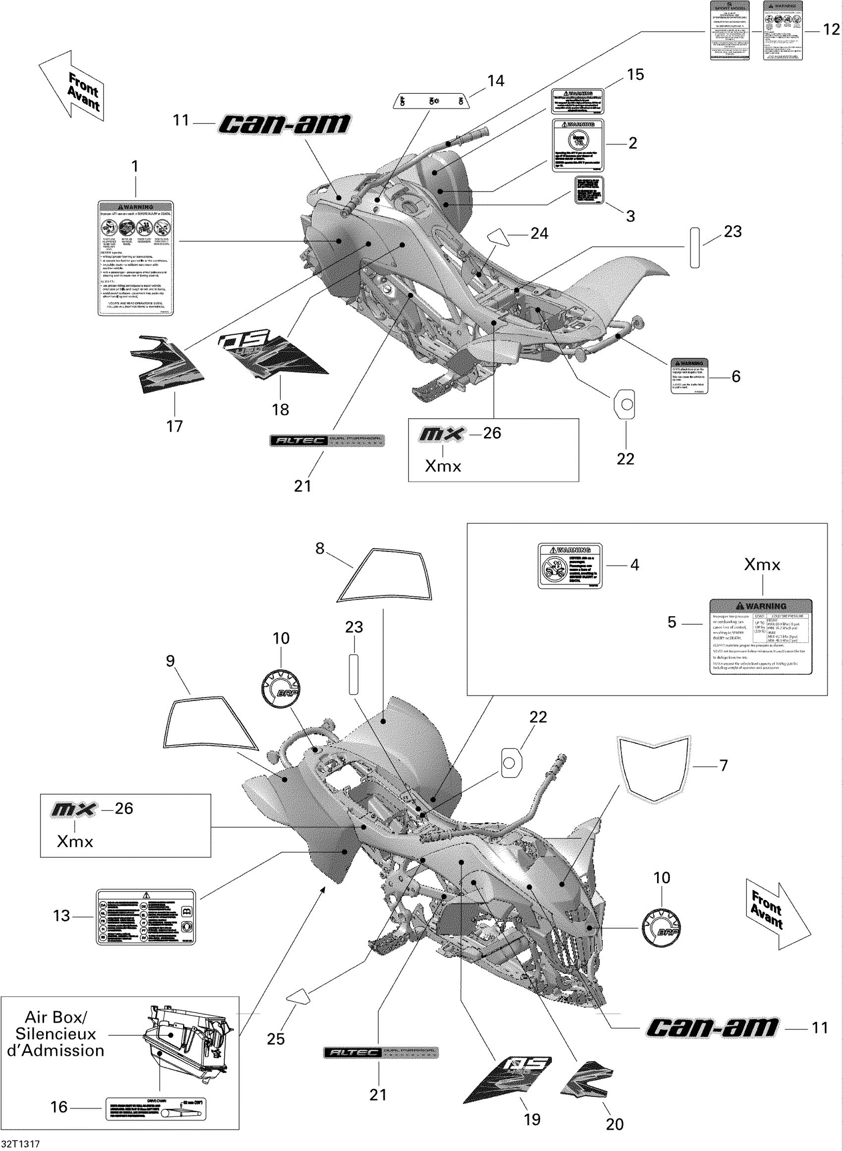 WARNING DECAL, TIRE PRESSURE - Call your local BRP dealership | All Xmx Except CE