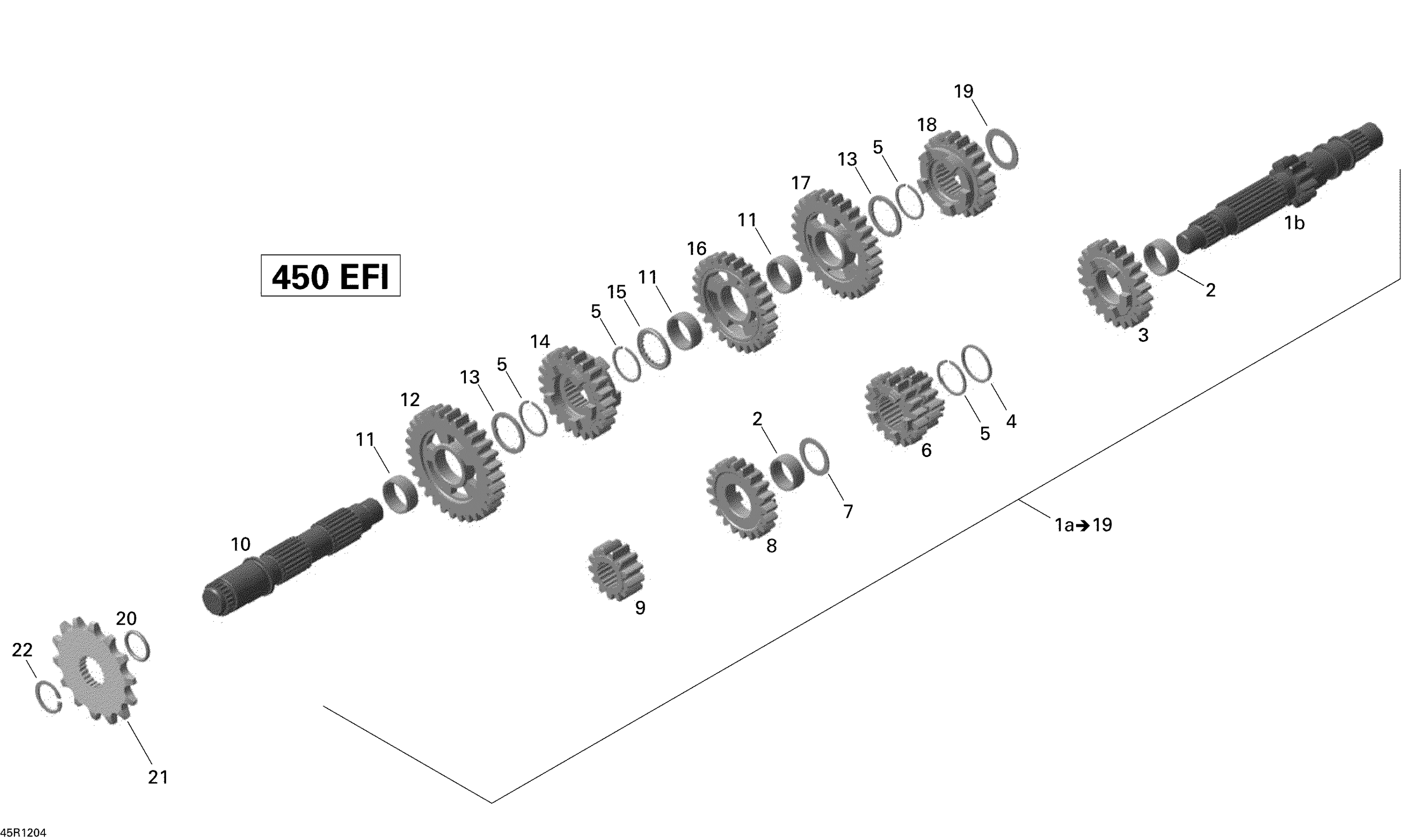 Can-Am DS 450EFI Xxc & Xmx, 2012 Gear Box Diagram